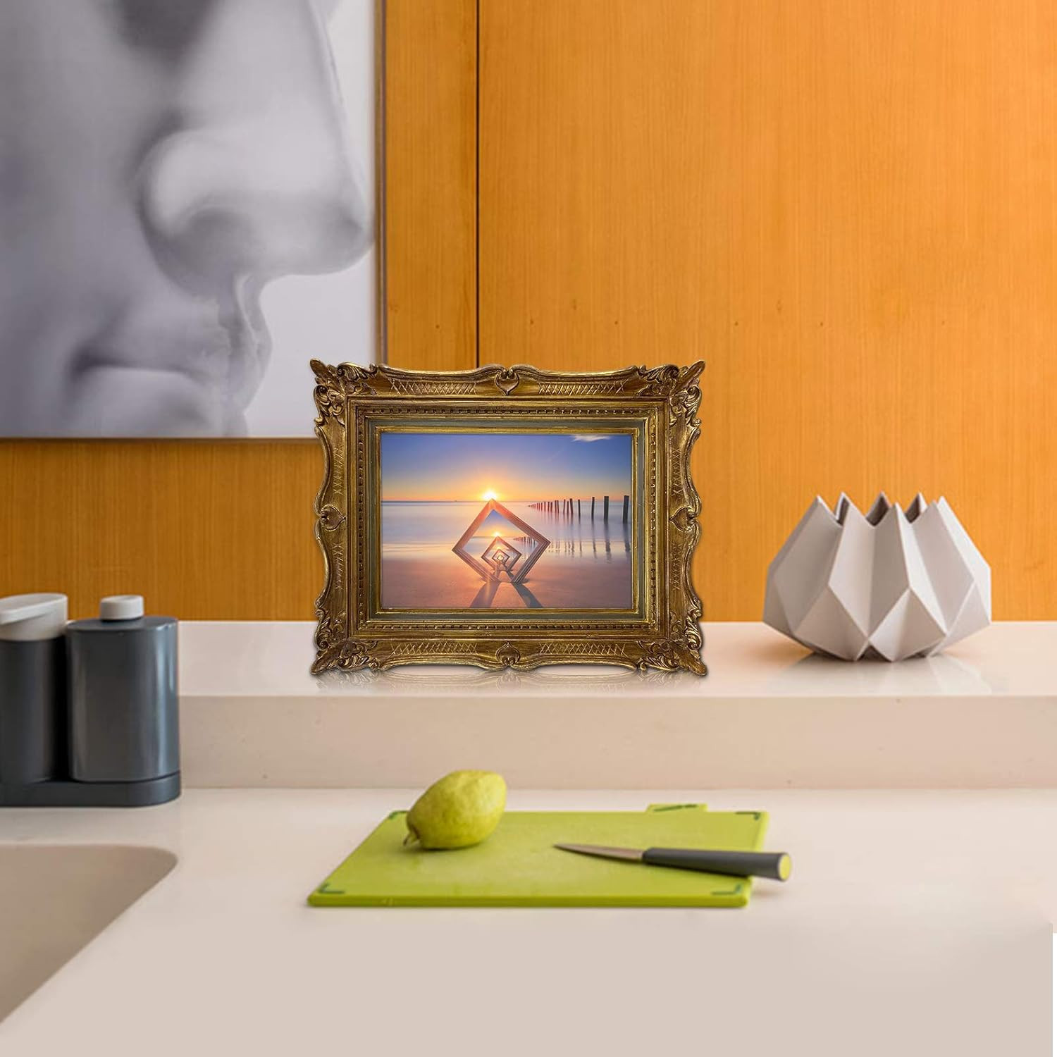 4X6 Vintage Bronze Gold Picture Frame, 4 by 6 Ornate Antique Picture Frame for W