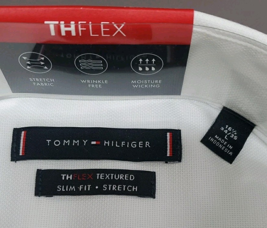 как выглядит New Tommy Hilfiger Slim Fit THFLEX Dress Shirt White Sz Lg 16.5 43/35 фото