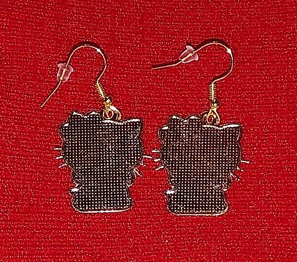 Hello Kitty Christmas Holiday Holding Bells Gold Plated Dangle Drop Earrings
