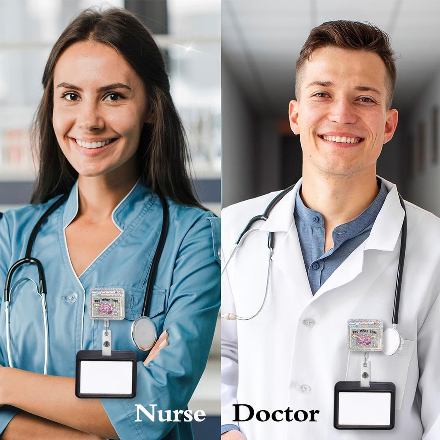 Too Many Tabs Cute Glitter Brain Badge Reel, Retractable Badge Holder for ADH...