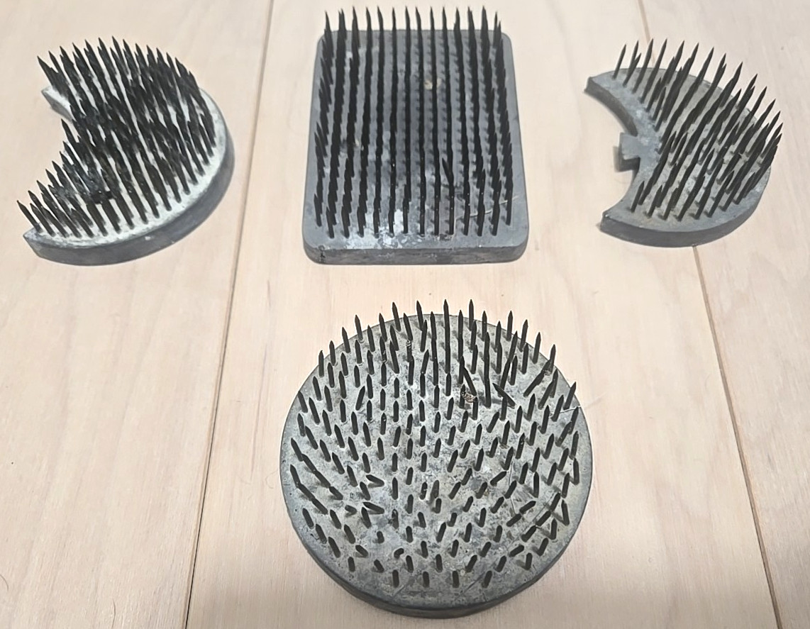 4 Vintage Flower Frogs Metal Spikes Round Half Moon Rectangle