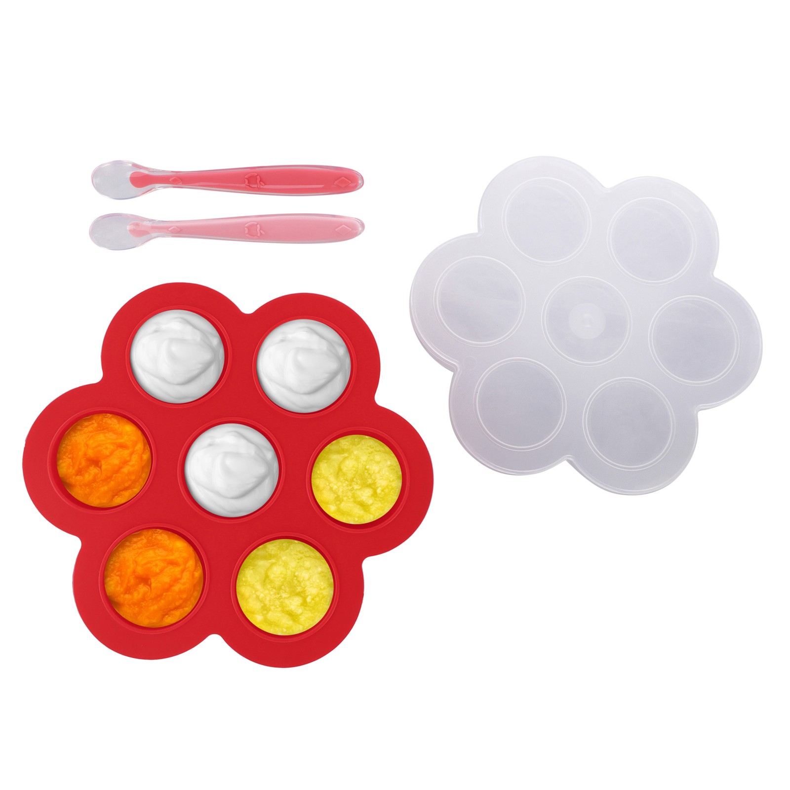 как выглядит Acorn Baby Red Food Container Freezer Thick with Thin Lid and 2pk Spoons фото