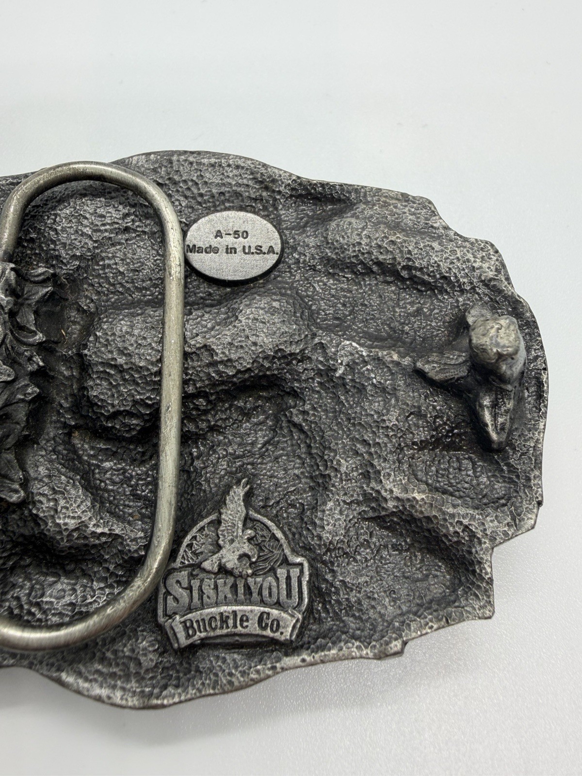 Vintage 1987 SISKIYOU I'd Rather Be Hunting Pewter Belt Buckle Made USA