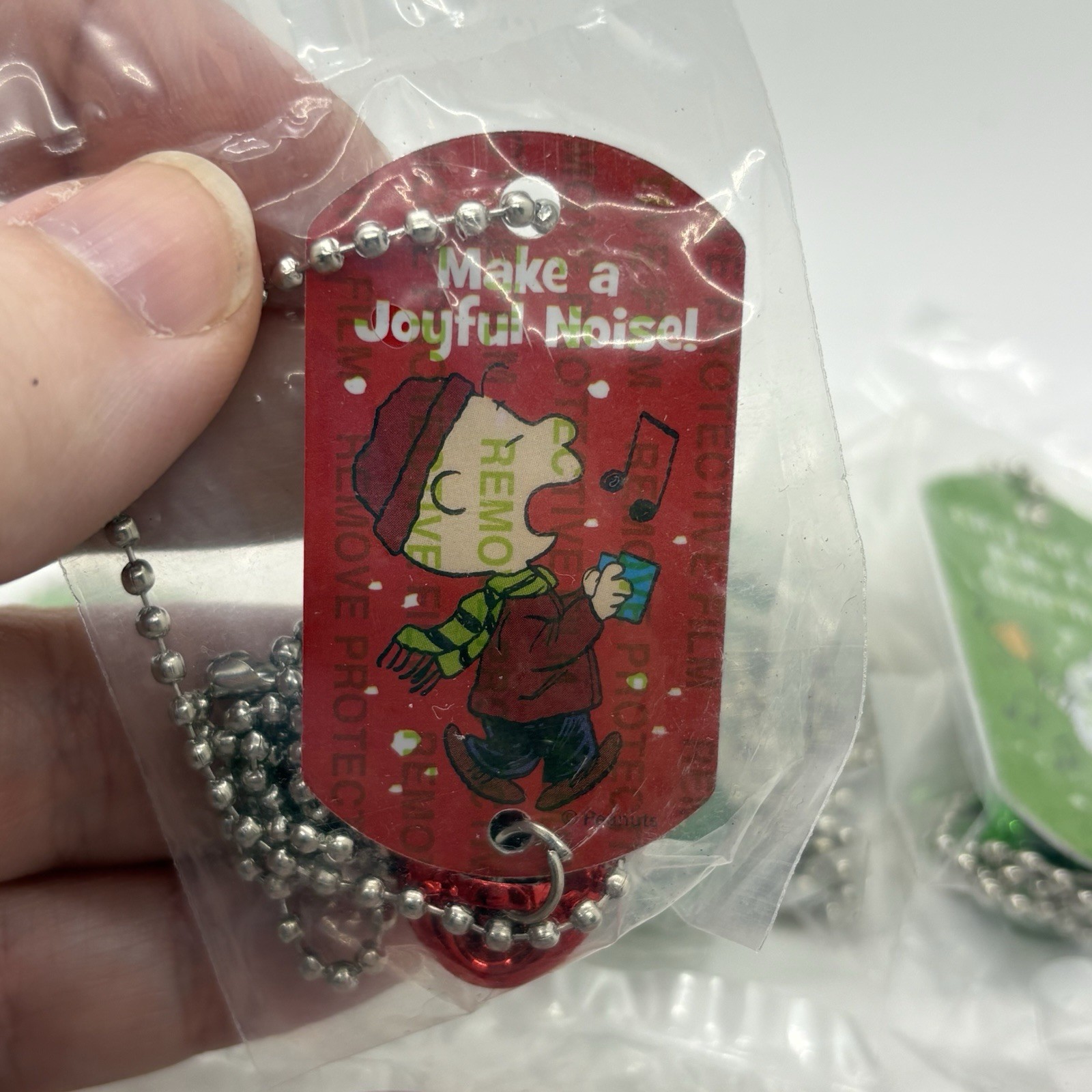 как выглядит Peanuts Festive Christmas Jingle Bell Dog Tag Necklace Charlie Brown Snoopy Lucy фото