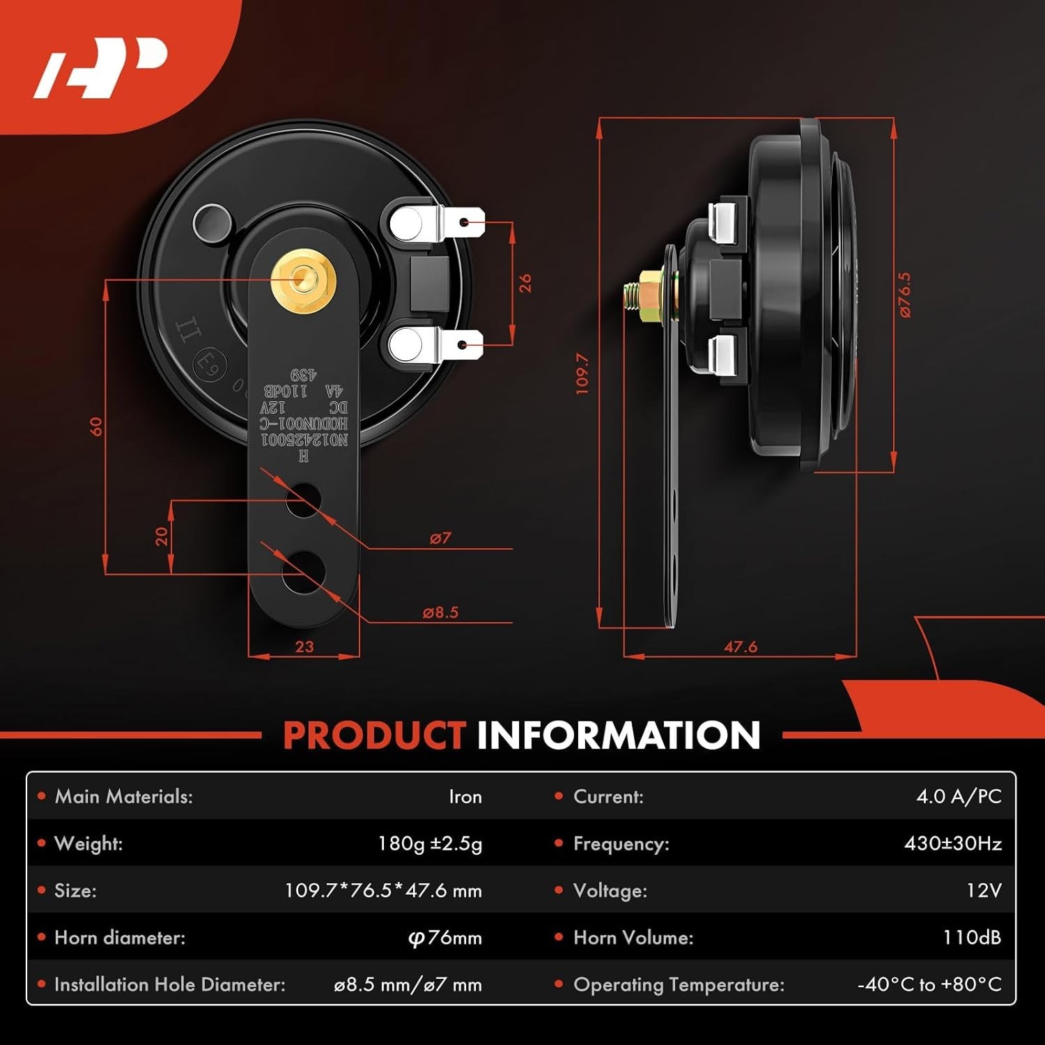 Disc Horn High Universal Electric Horn - 12V 110 dB - Compatible with Passenger