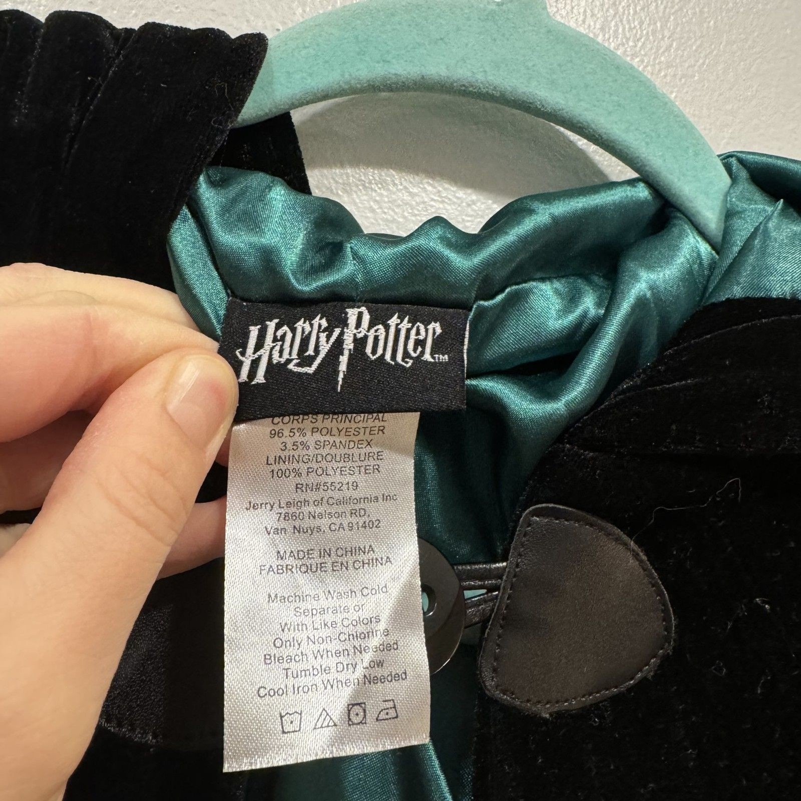 Harry Potter Slytherin Deluxe Robe Juniors OSFM Black Velvet Green Satin Hooded