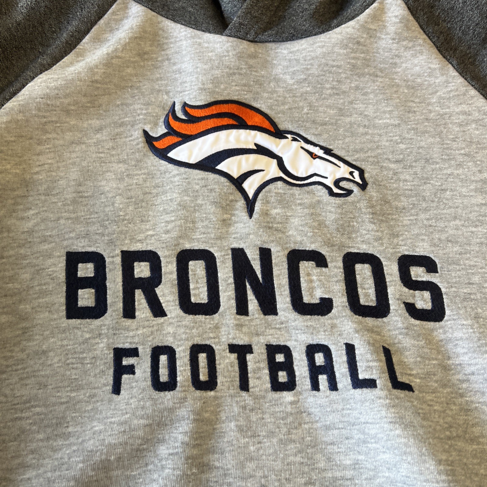 • NFL Team Apparel Youth Boy's Large 14/16 Denver Broncos Hoodie Gray/Dark Gray.