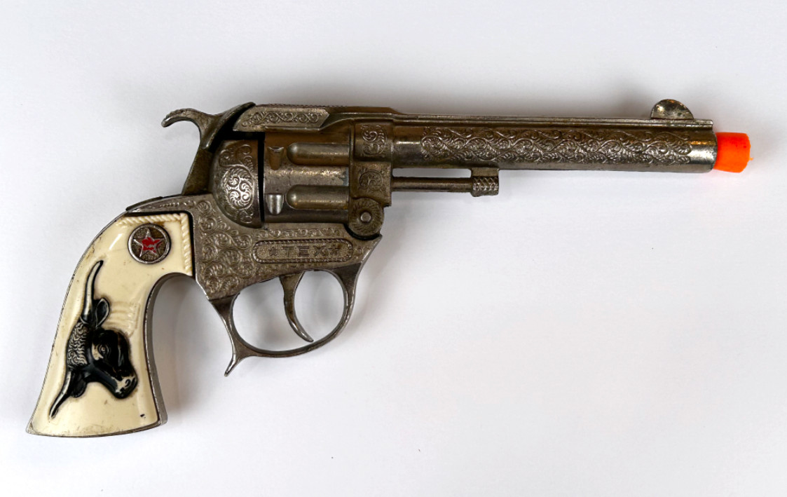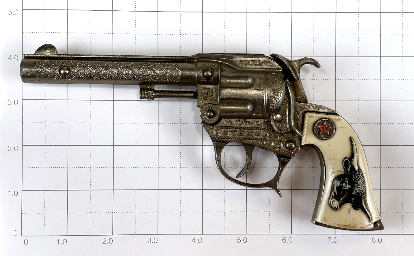 как выглядит Vintage Hubley TEX Texas Cap Gun Revolver Made in USA Break Open Action фото