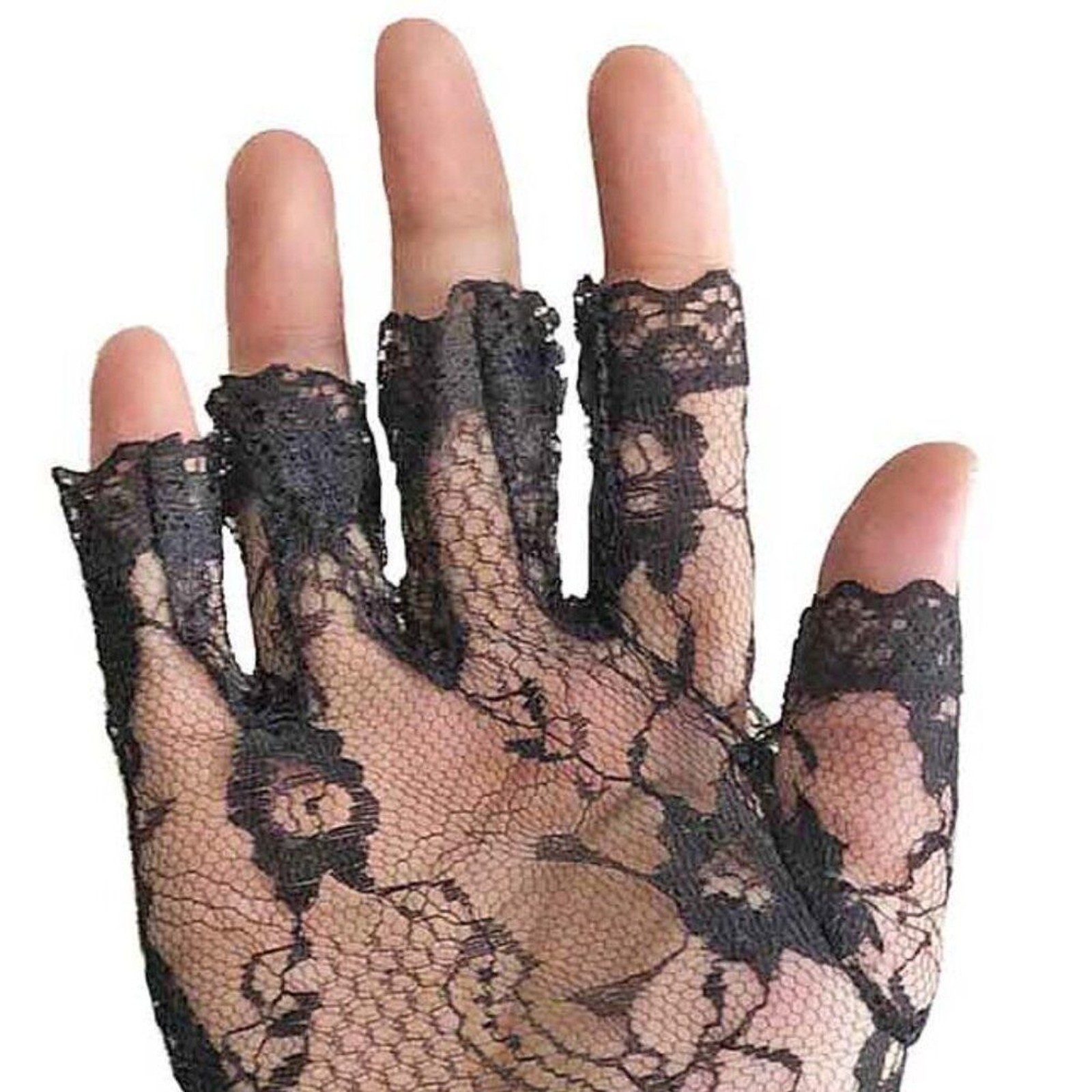 как выглядит Fingerless Black Lace Gloves Womens One Size OS Wrist Length with Ruffle фото