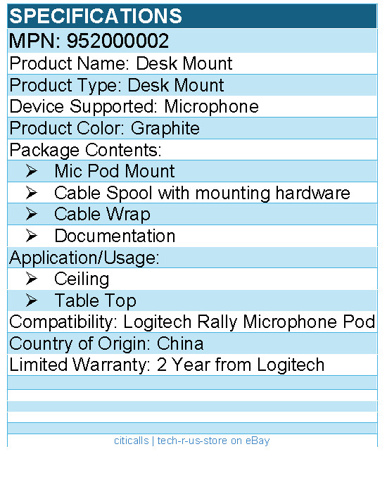 Logitech 952000002 Rally Mic Pod Table Mount - Graphite