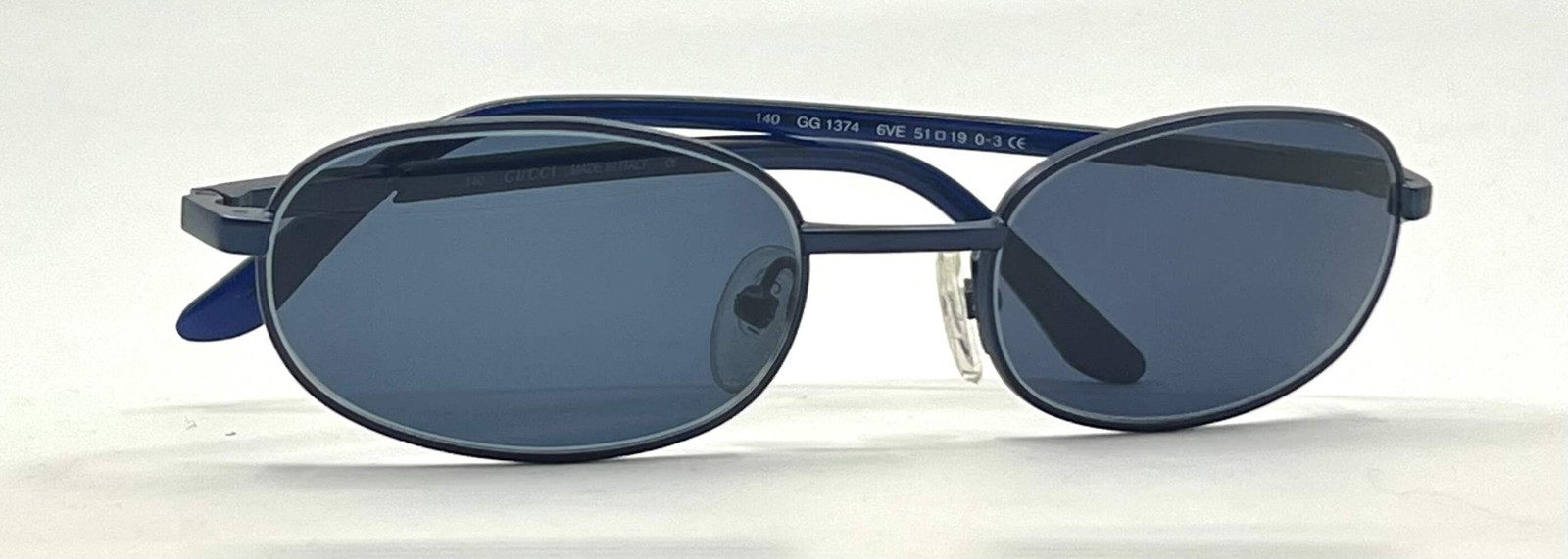 как выглядит Gucci GG1374 6VE Y2K VINTAGE Oval Sunglasses-New Solid Blue Custom Lenses фото