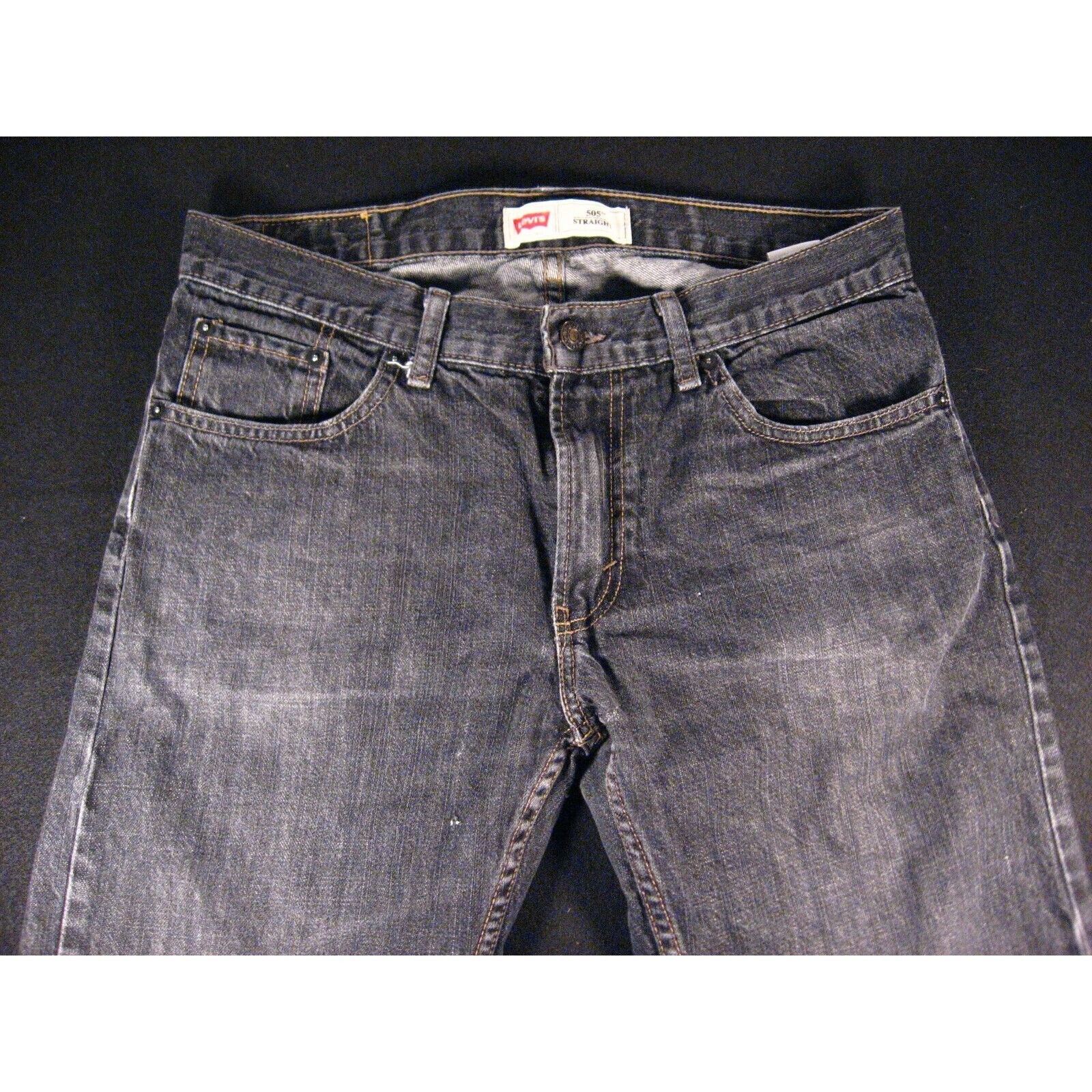 Vintage Levis 505 Boy's Black Jeans TAG 12 Husky Distressed Straight 32x27 Denim