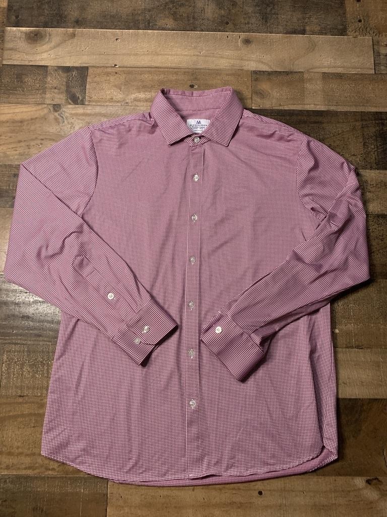 Mizzen Main Dress Shirt Mens XL Red Gingham Trim Fit Performance Stretch