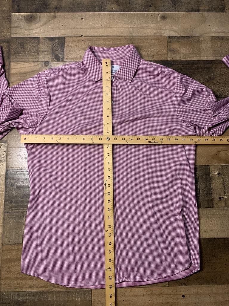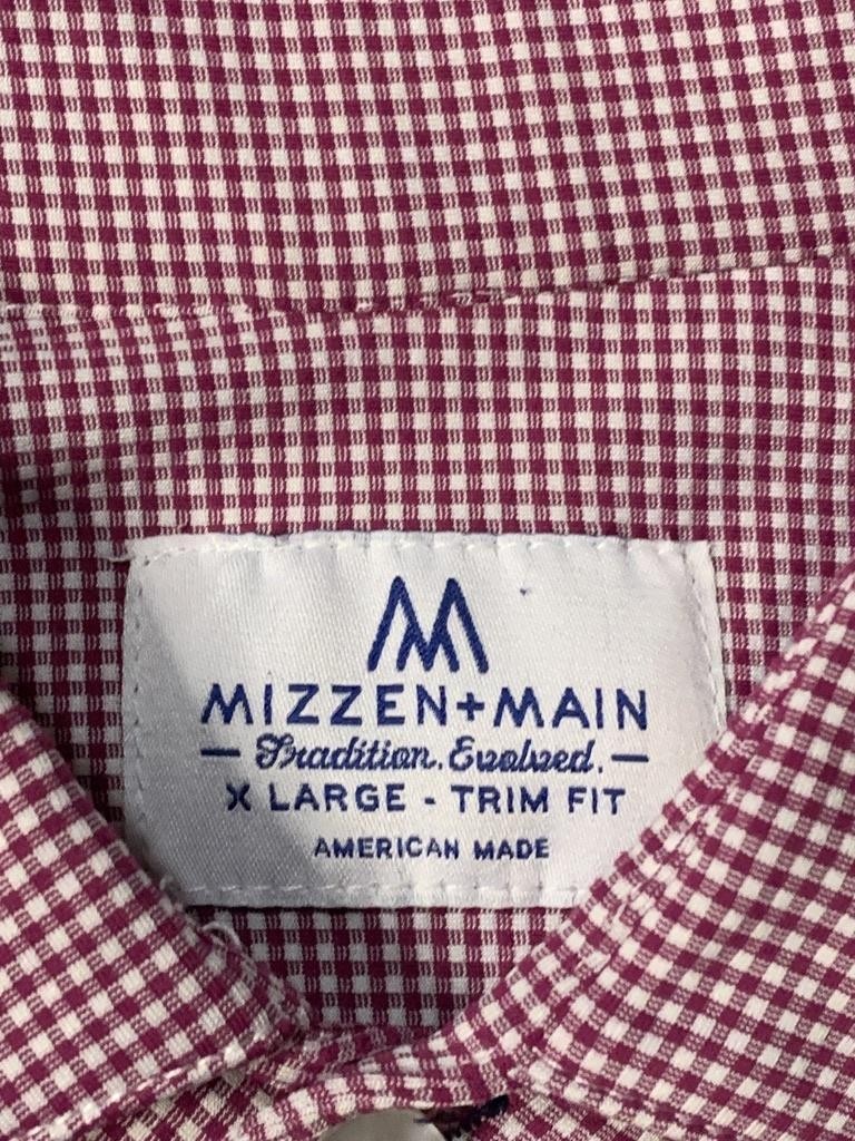 как выглядит Mizzen Main Dress Shirt Mens XL Red Gingham Trim Fit Performance Stretch фото