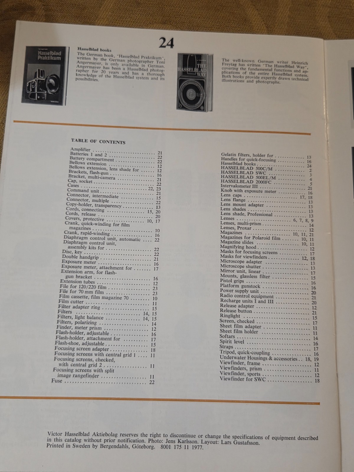HASSELBLAD Vintage 1977 Catalog Brochure Sweden English 8001E