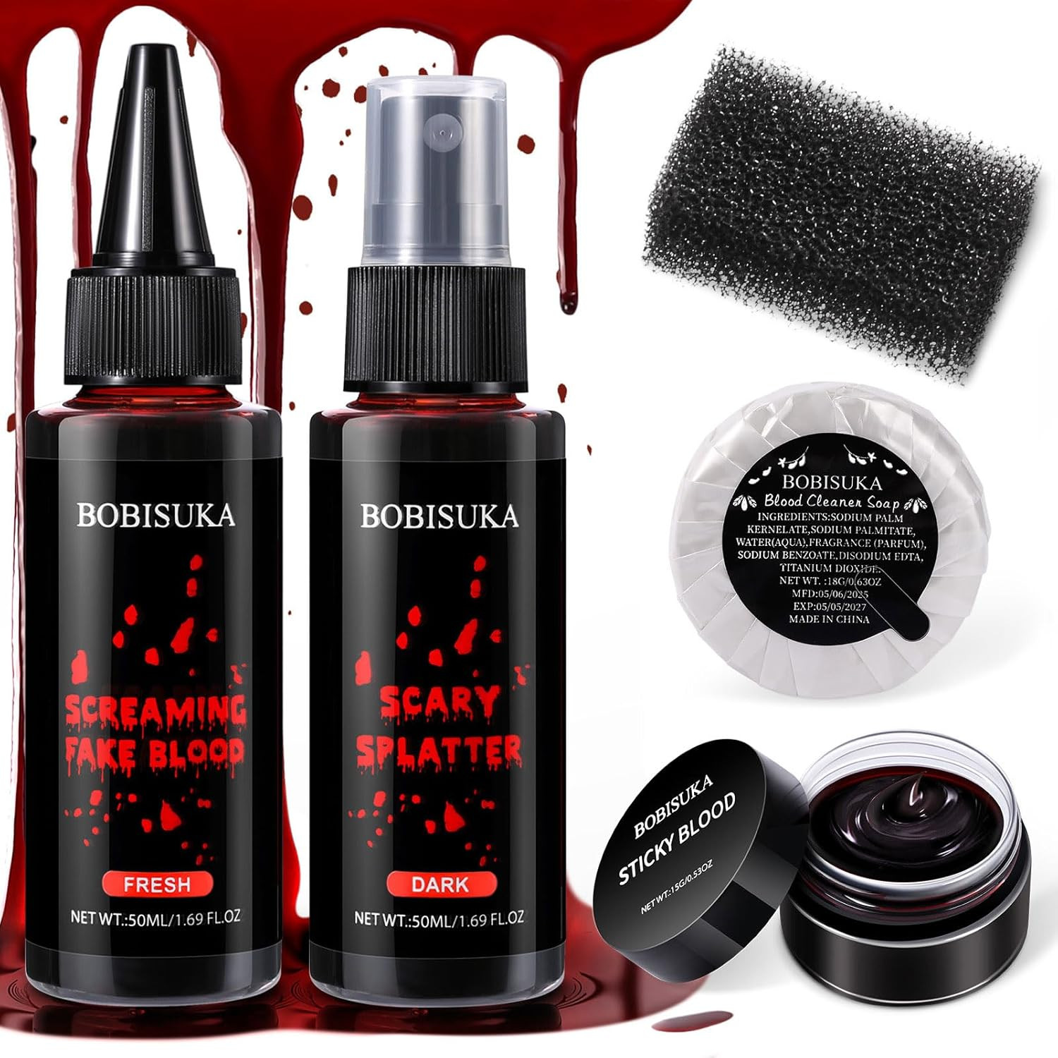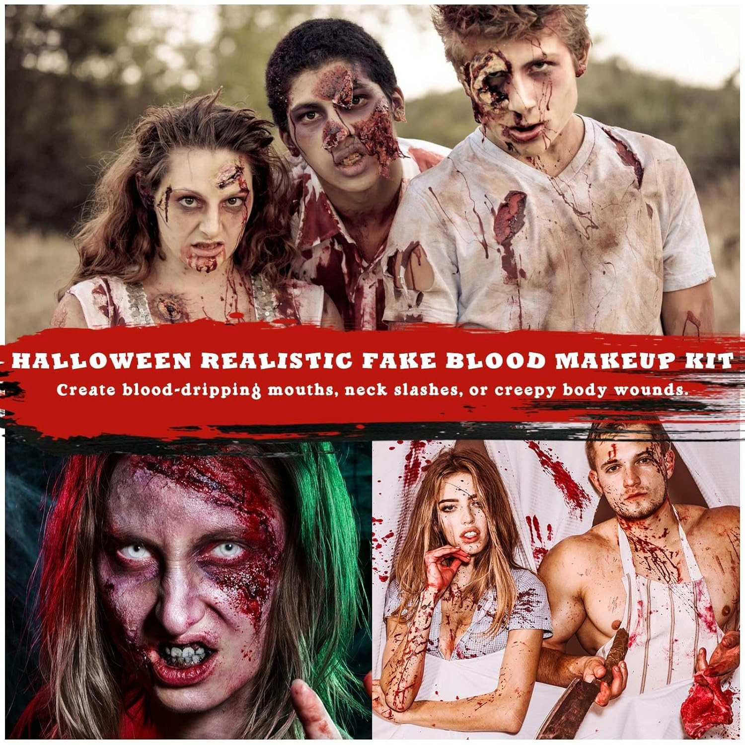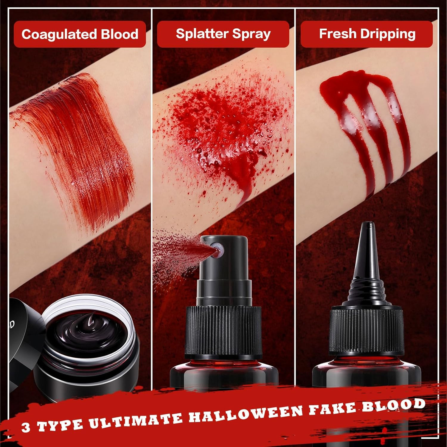 5PCS Halloween Fake Blood Kit Dripping Fresh Blood, Dark Spray Blood, Coagulat