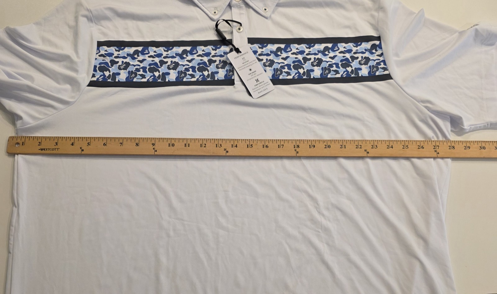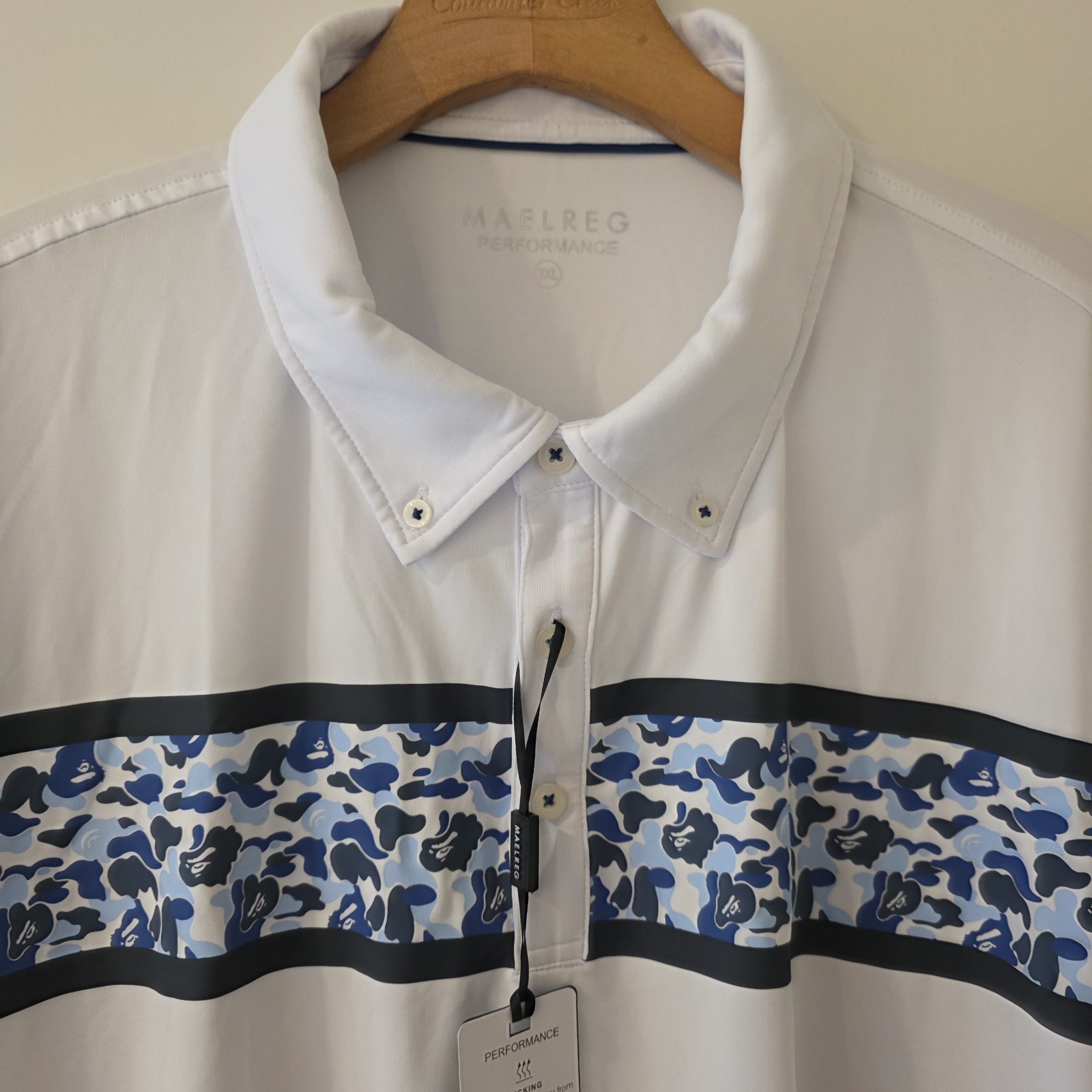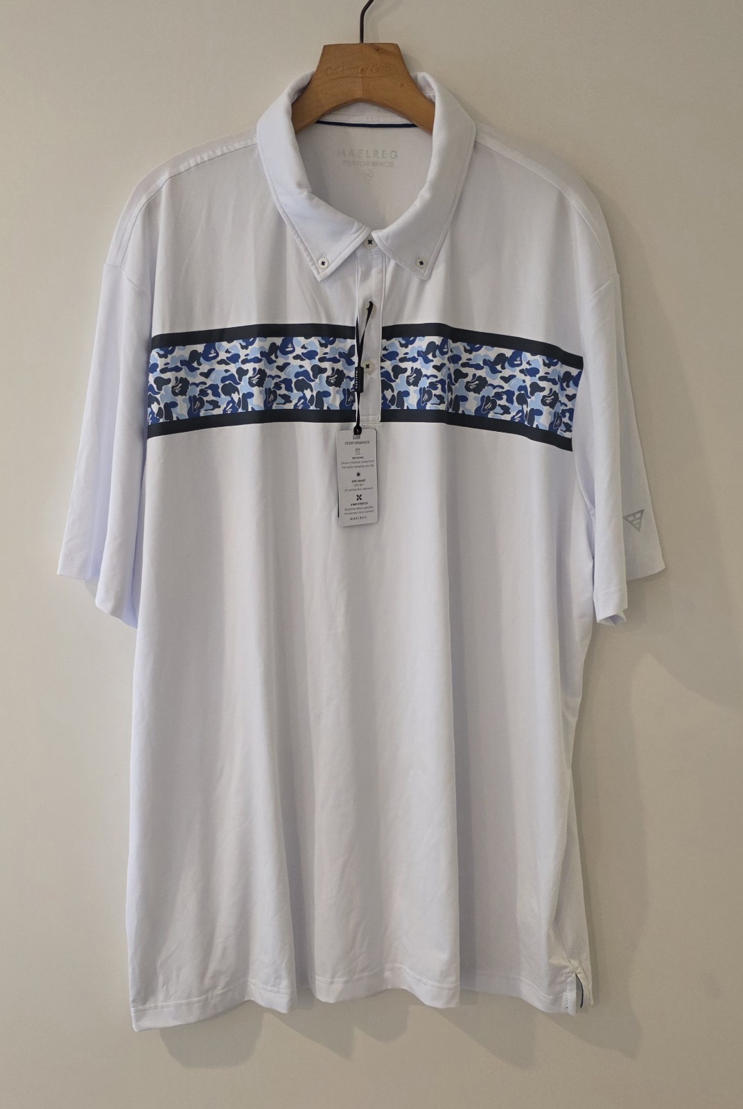 MAELREG Performance Polo Shirt White W/Blue Camo Stripe Golf Mens 3XL NEW