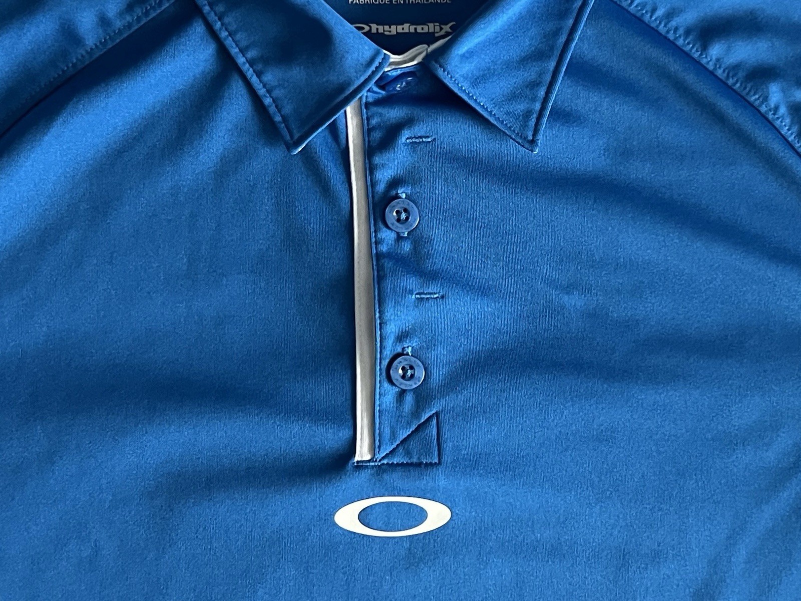 Oakley Polo Shirt Men s Sz Medium Blue Performance Wicking Regular Fit Hydrolix