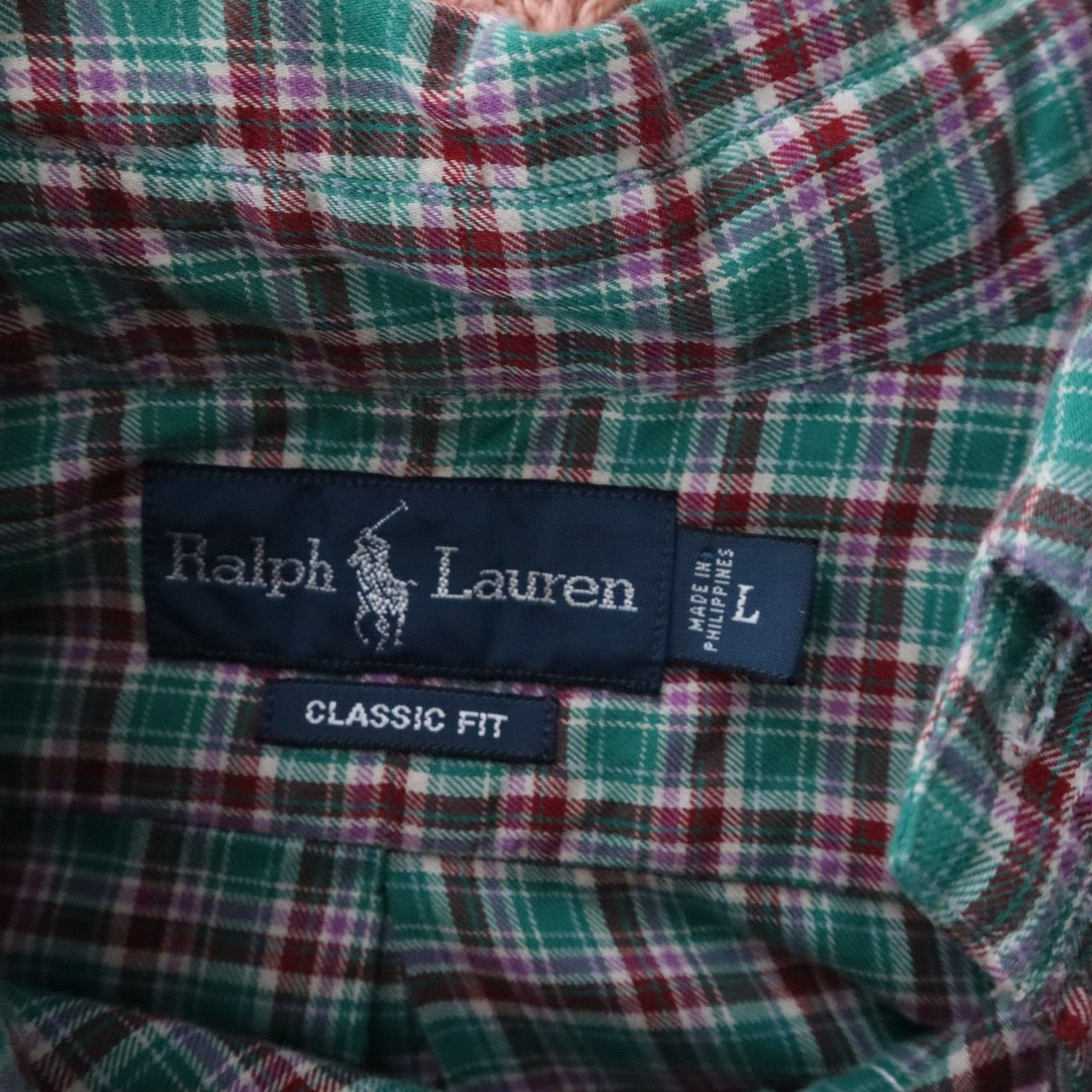 Ralph Lauren Men's Classic Fit Green Check Long Sleeve Cotton Button Shirt Large