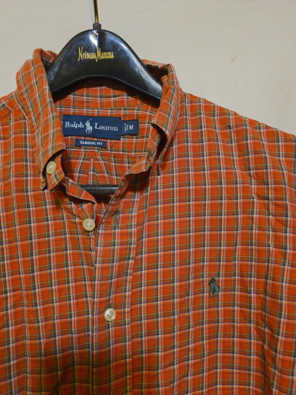 Ralph Lauren Button Down Classic Fit Shirt Long Sleeve Orange Plaid Men s Medium