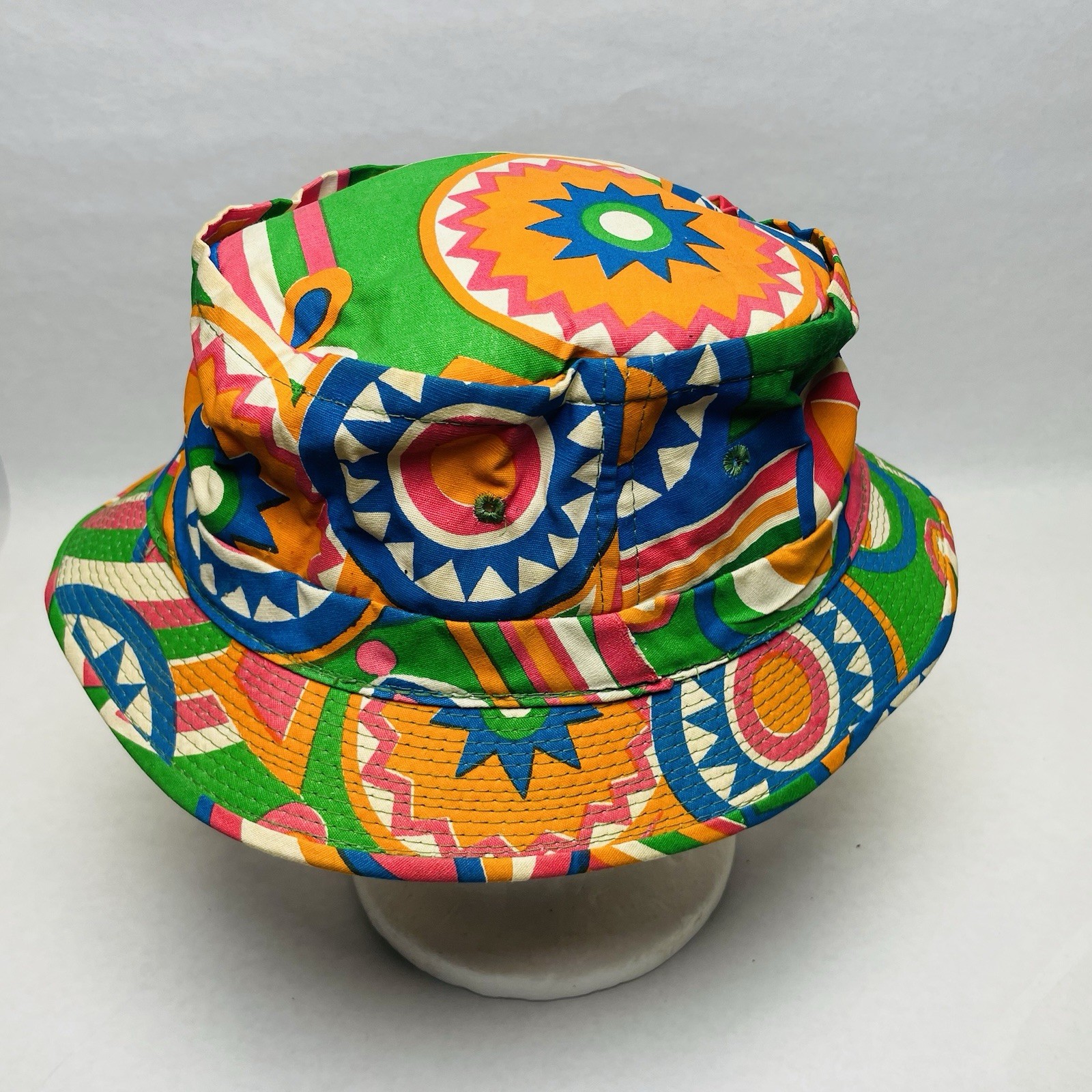 VINTAGE 1960s 70s ROLL-UP BUCKET HAT CRUSHABLE Orange, Green,Blue Pink Sz Large