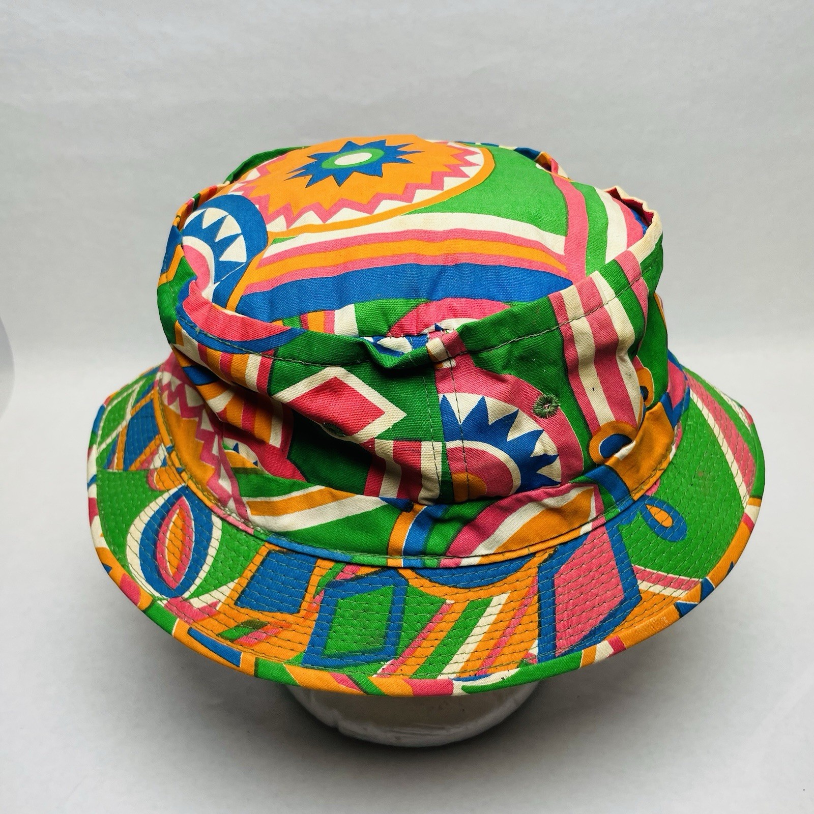 как выглядит VINTAGE 1960s 70s ROLL-UP BUCKET HAT CRUSHABLE Orange, Green,Blue Pink Sz Large фото