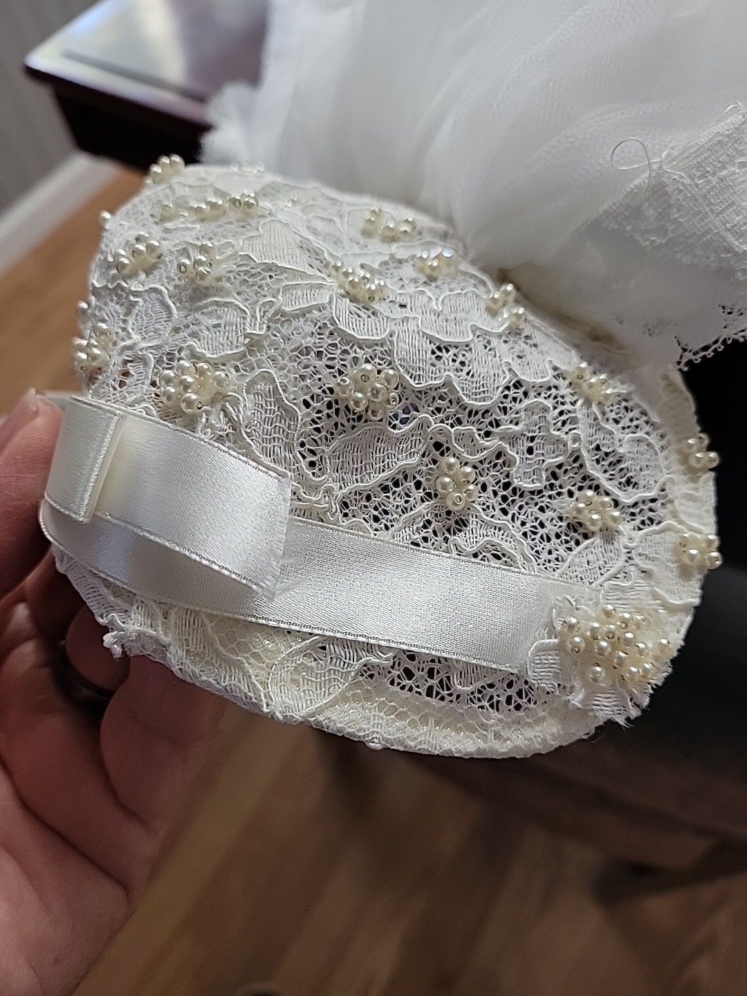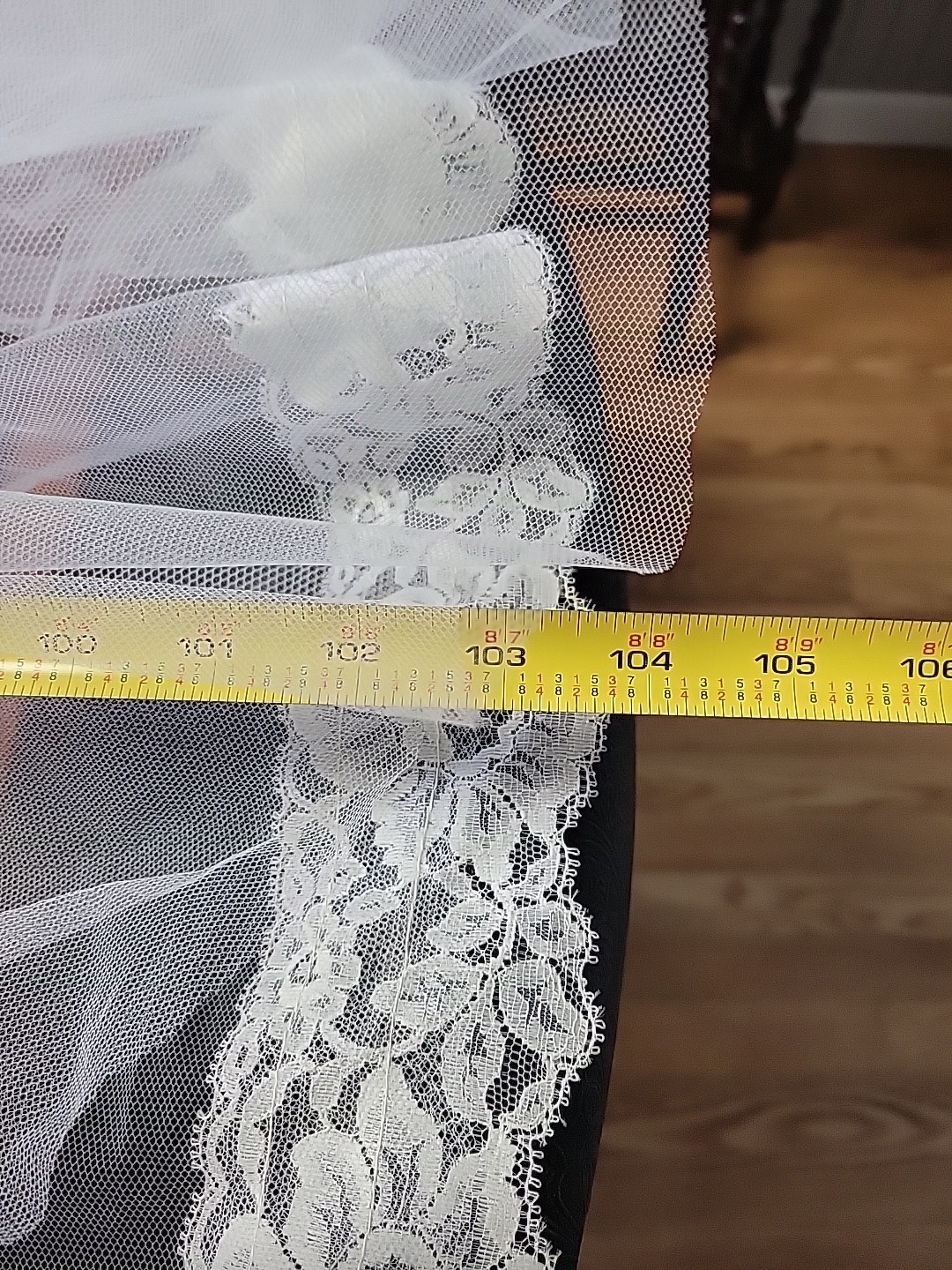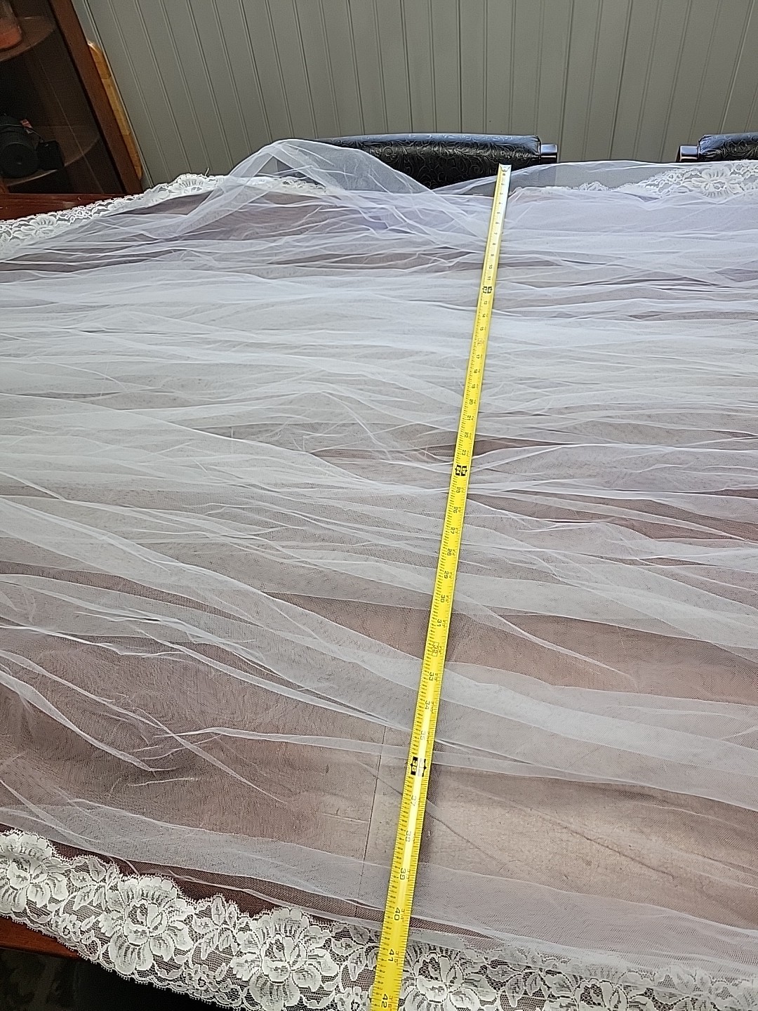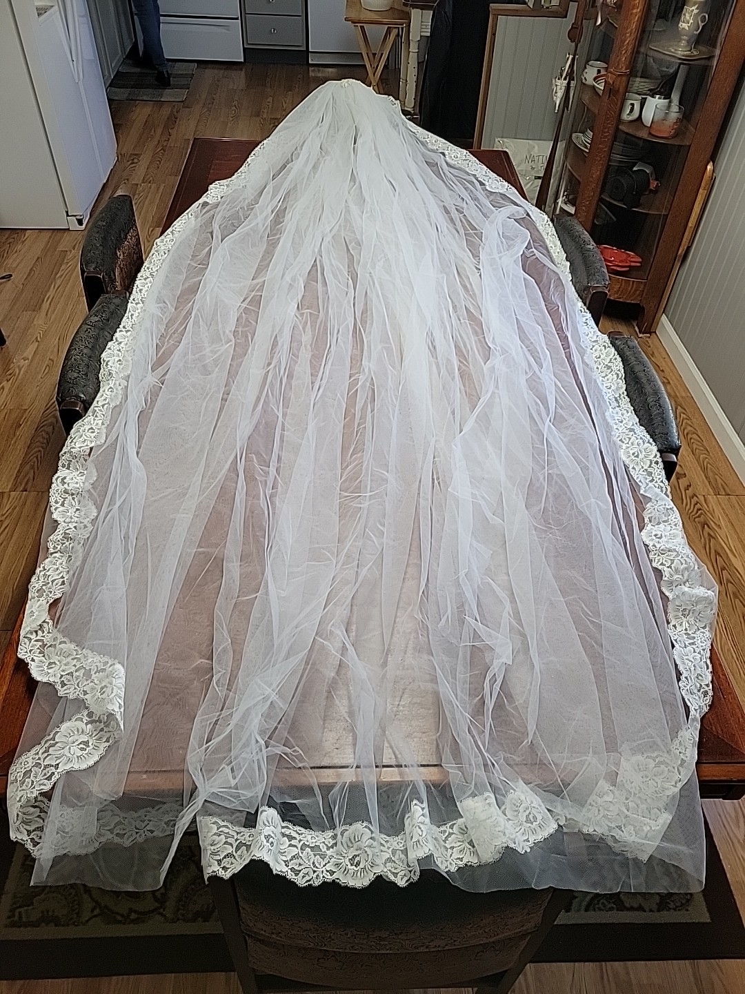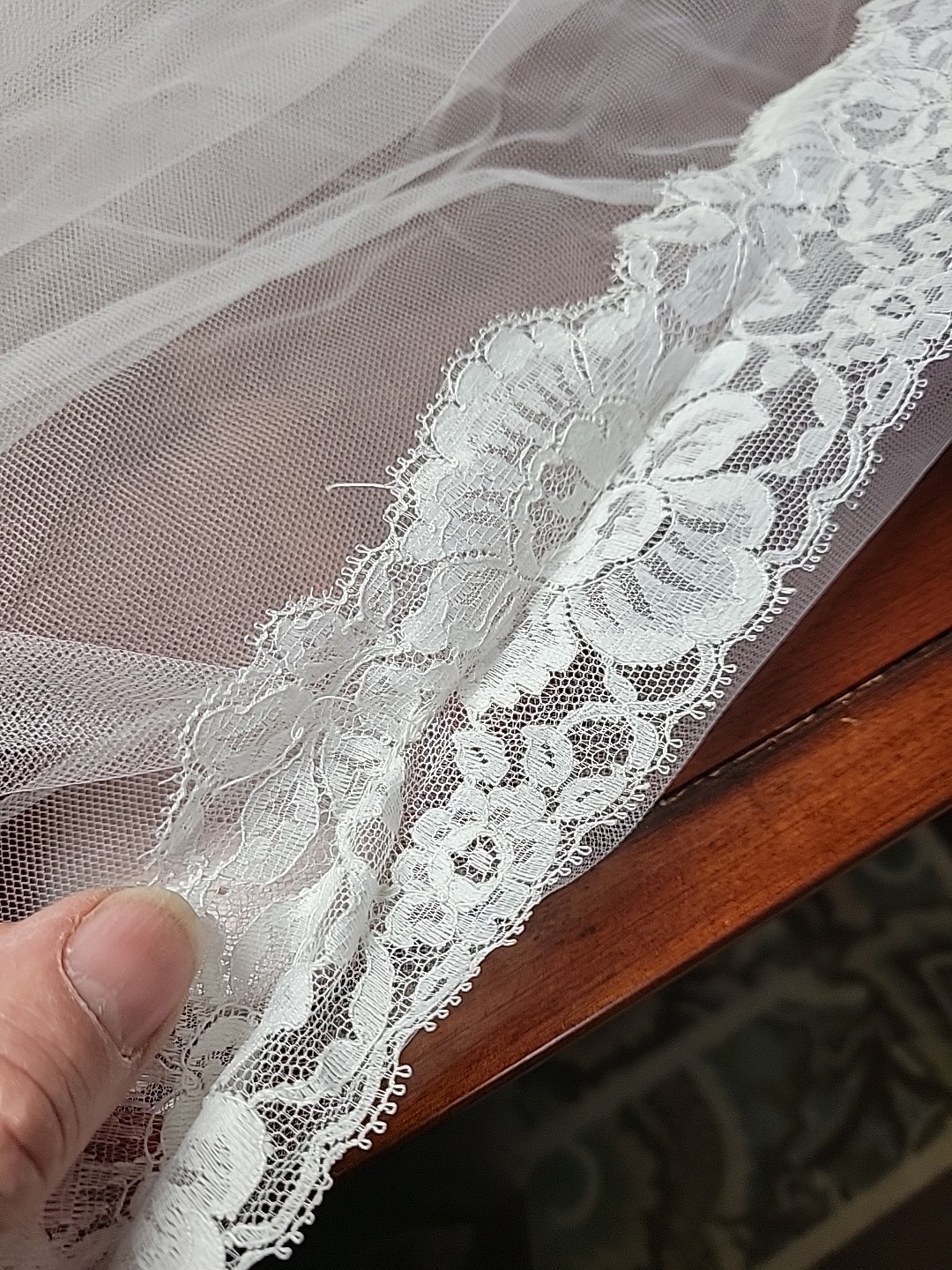 как выглядит Vtg Bridal Veil cap headpiece beaded lace 70 s 60s 40s hat victorian,104"LONG фото
