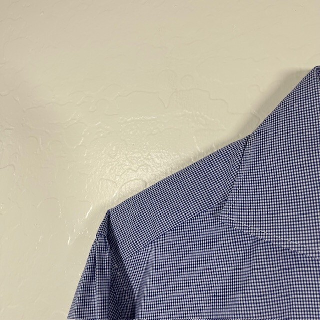 как выглядит SuitSupply Dress Shirt Mens 15 3/4 Egyptian Cotton Blue White Micro Check Button фото