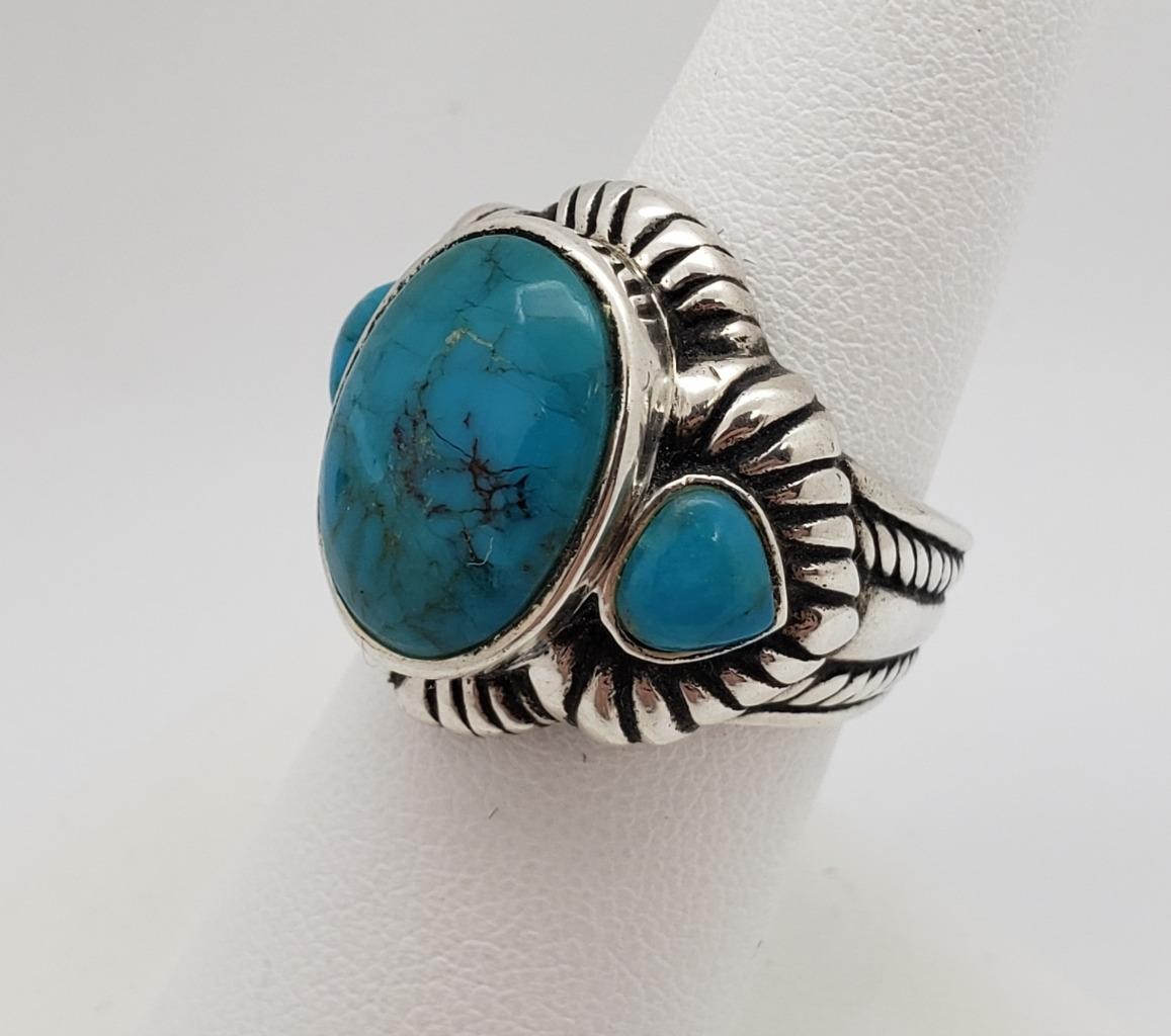 как выглядит 925 NK THAI Sterling Silver Turquoise Ring Size 7 R183 фото