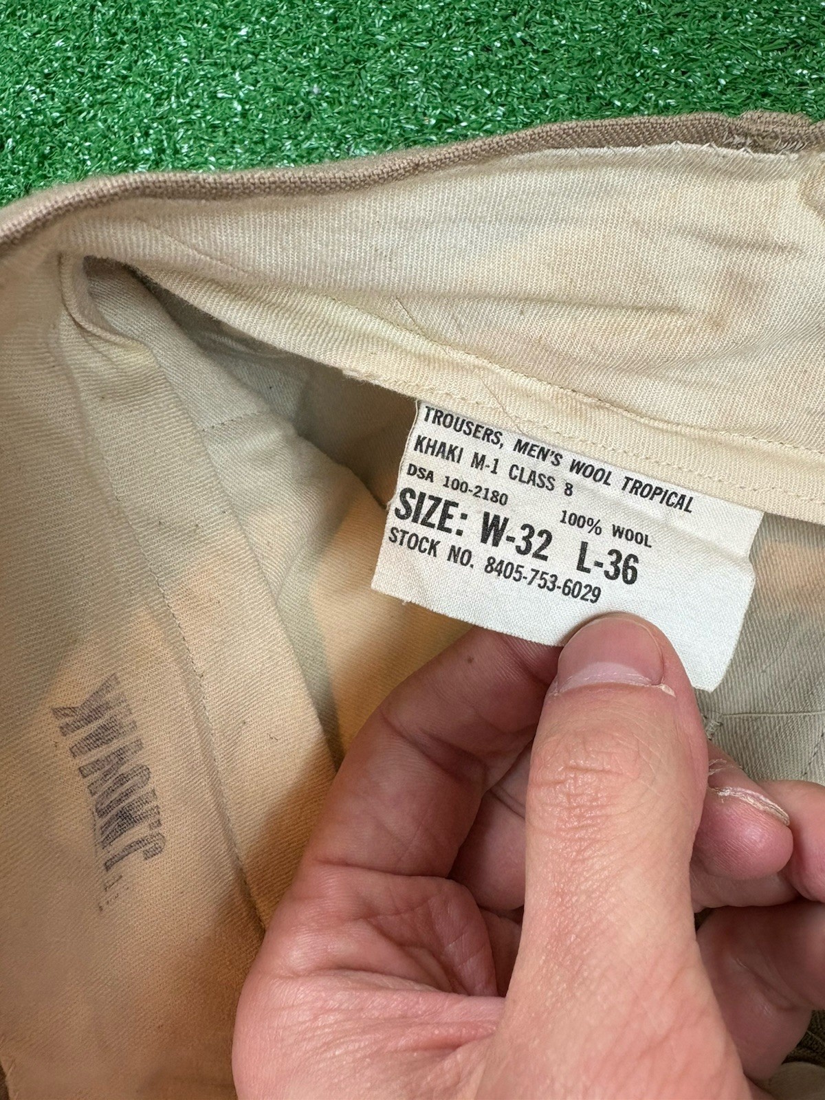 Vintage 60s M1 Khaki Medium 29 Wool Tropical Military Army Trousers Pants USA