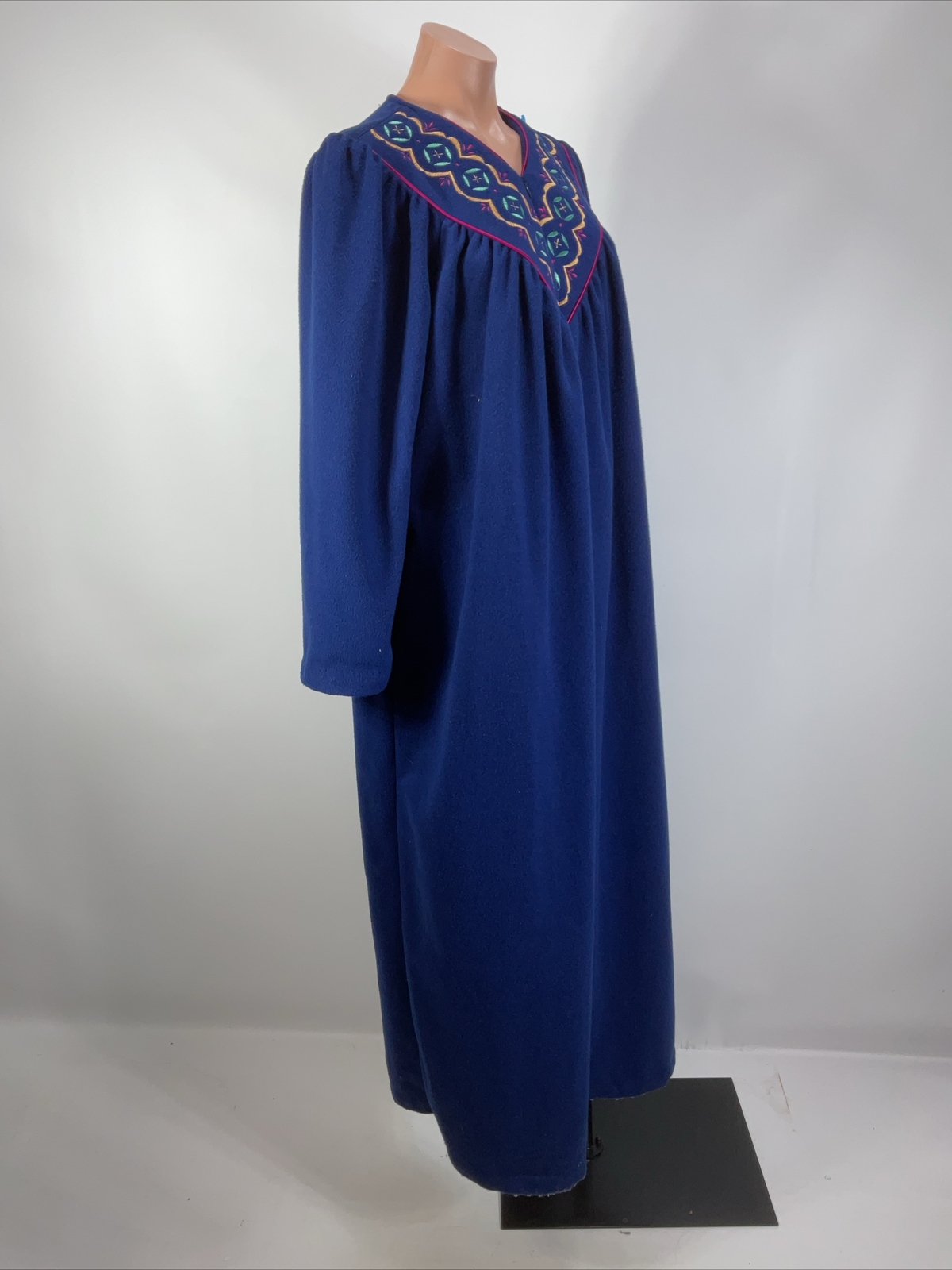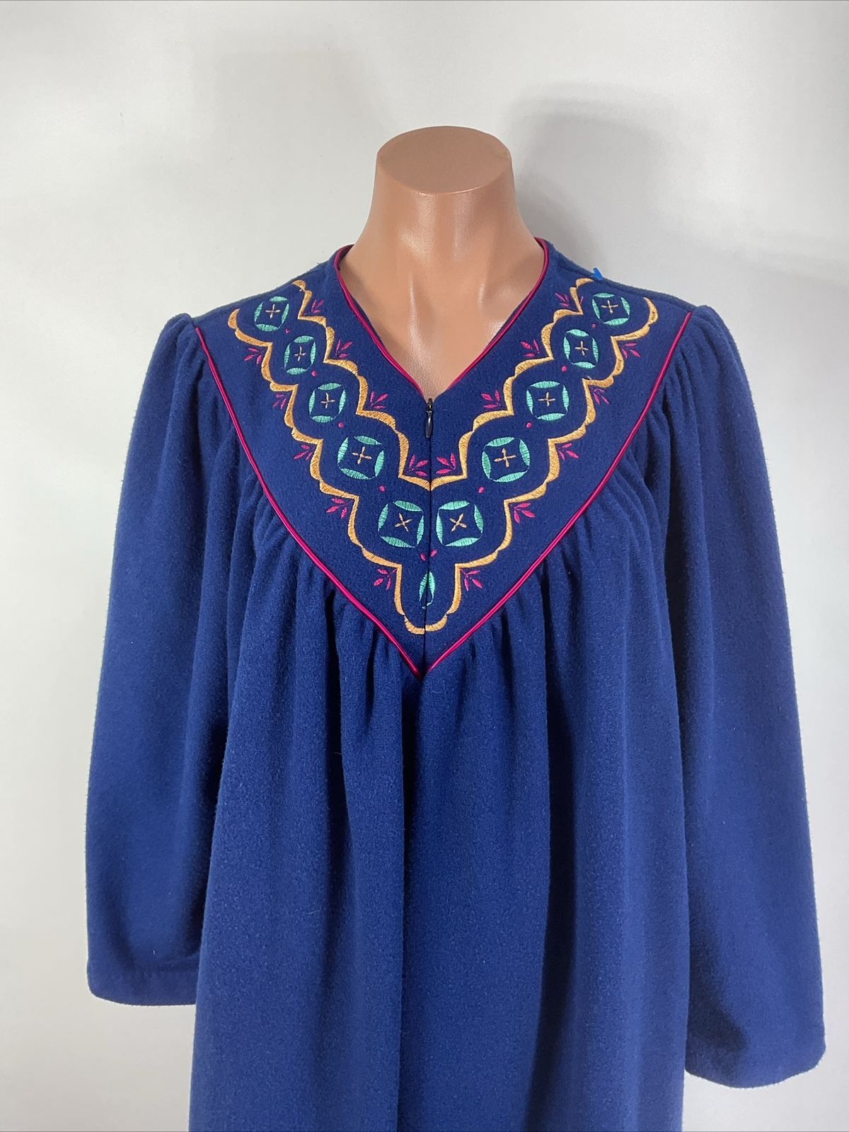 Appel VTG 80 Robe Royal Blue Floral Embroidered Zip Long Sleeve Warm Fleece USA