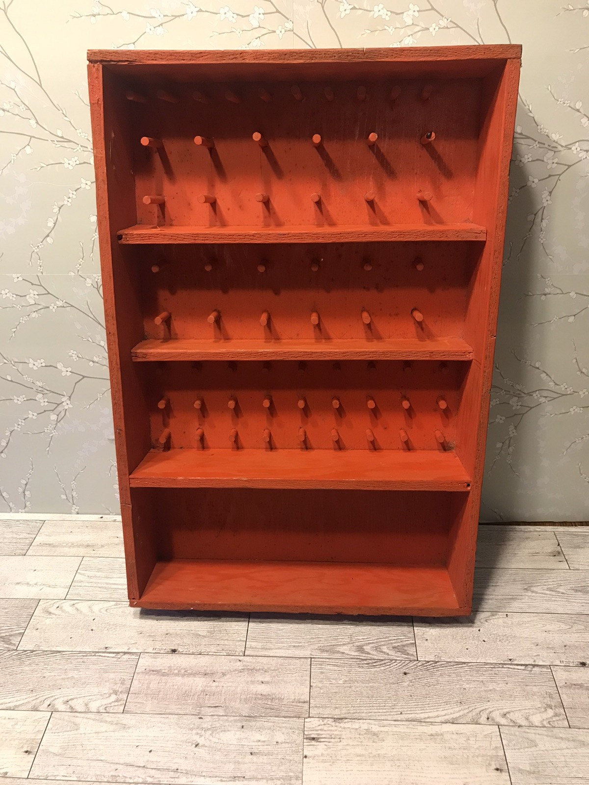 • Vintage Handmade Wooden Hanging Sewing Spool Thread Holder