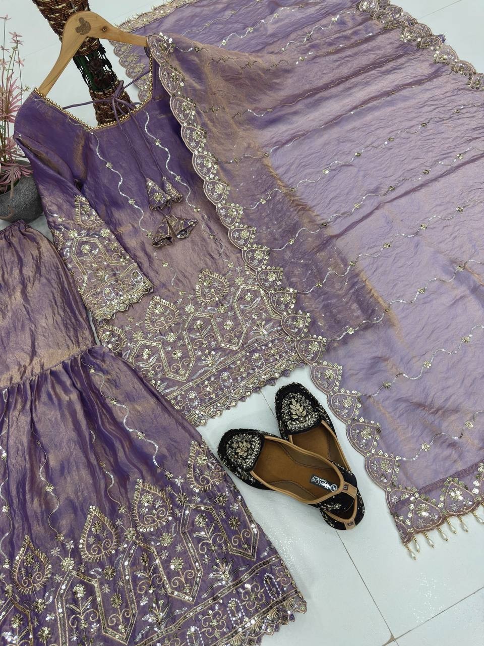 как выглядит New Heavy Satin Purple Top Palazzo With Dupatta For Indian Function Wear фото