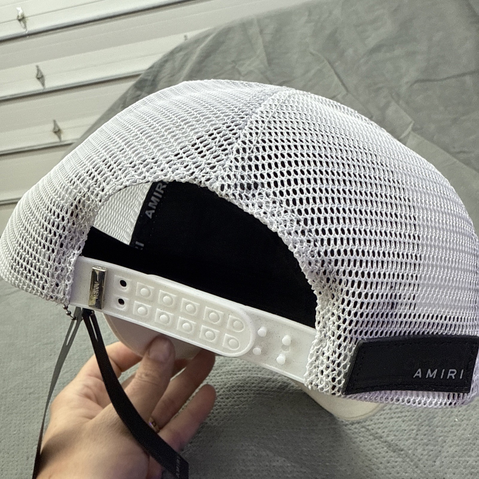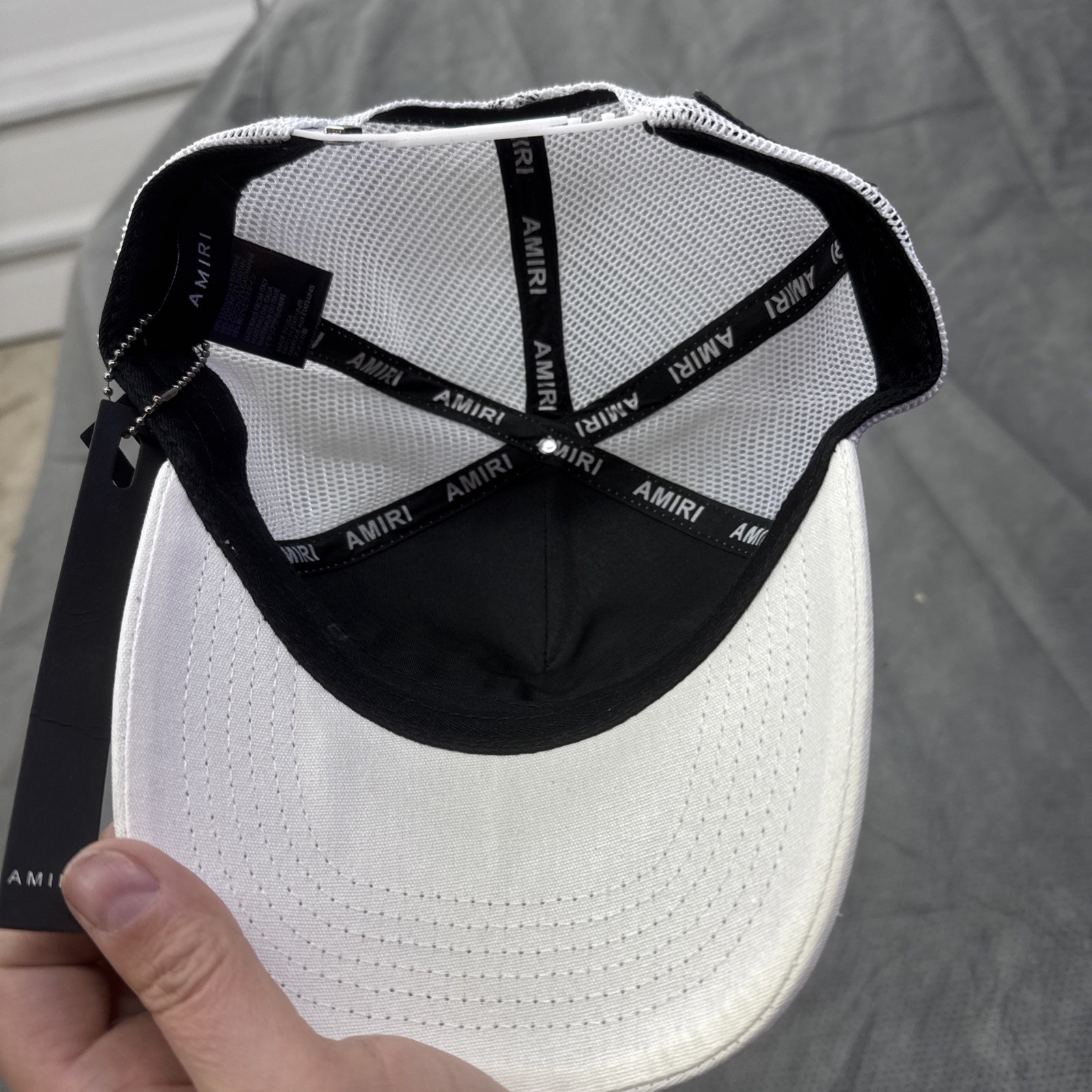 New Amiri Staggered Logo Trucker Hat White with Black Embroidered Logo One Size