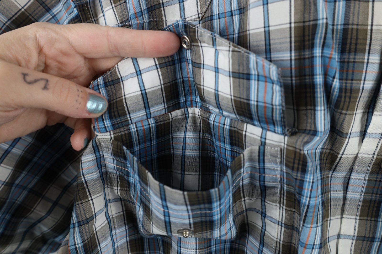 как выглядит Vintage 90s Wrangler Mens 2XL Western Snap Button Collared Short Sleeve Shirt фото