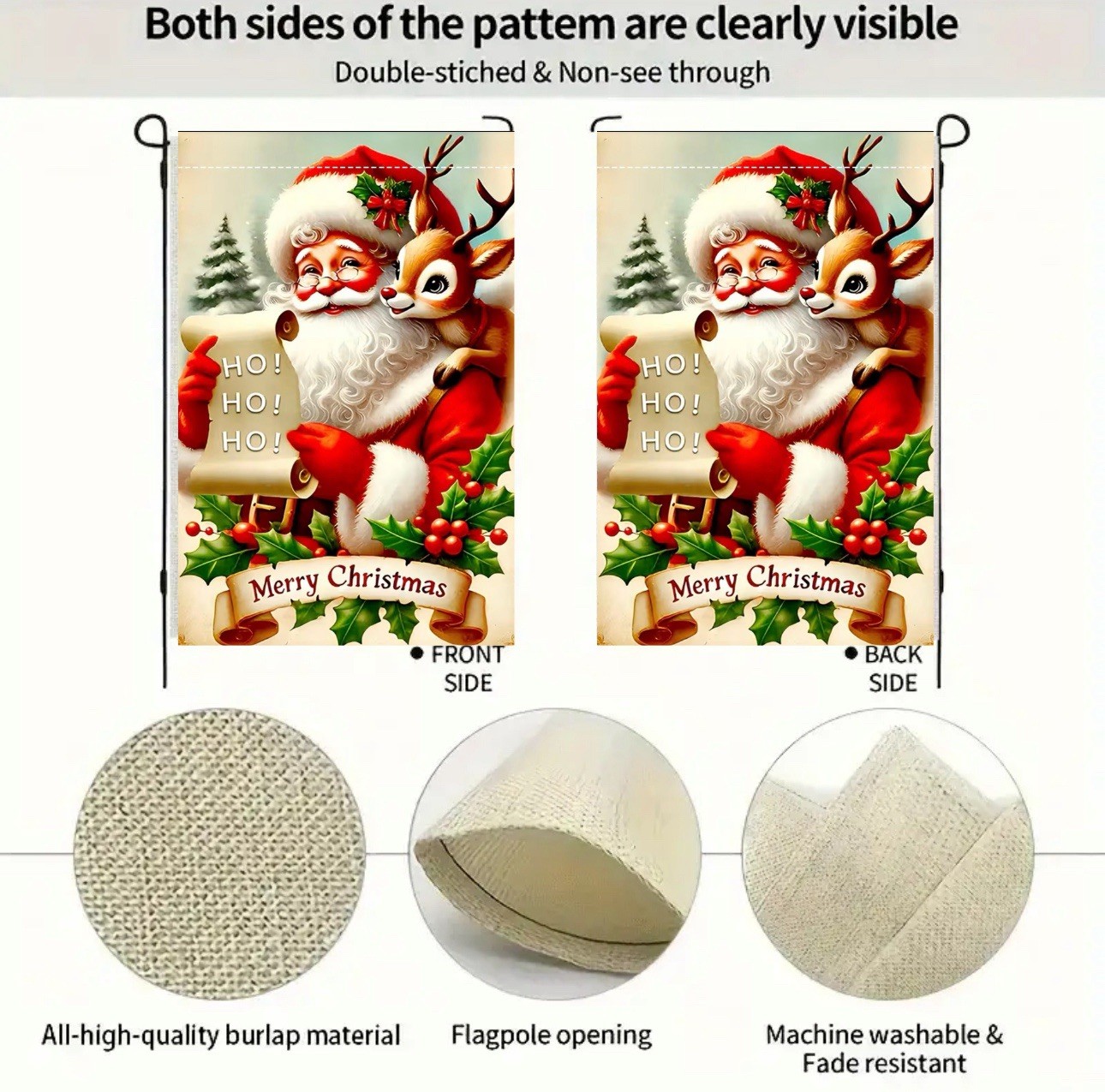 Garden Flag, 12 x18 , Merry Christmas Santa, Thick Burlap Polyester Double-sided