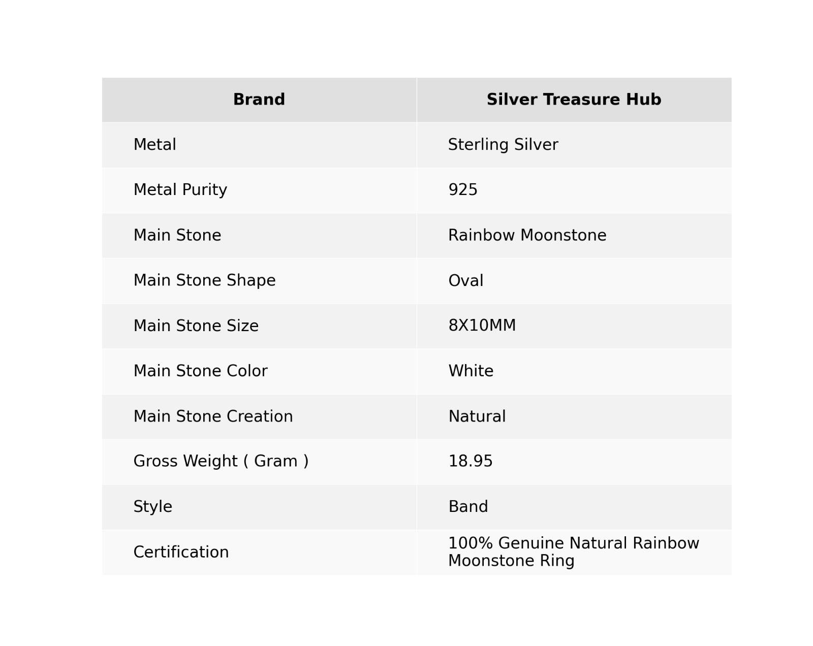 Certification: 100% Genuine Natural Rainbow Moonstone Ring