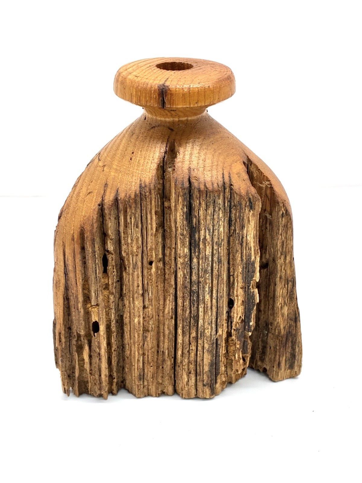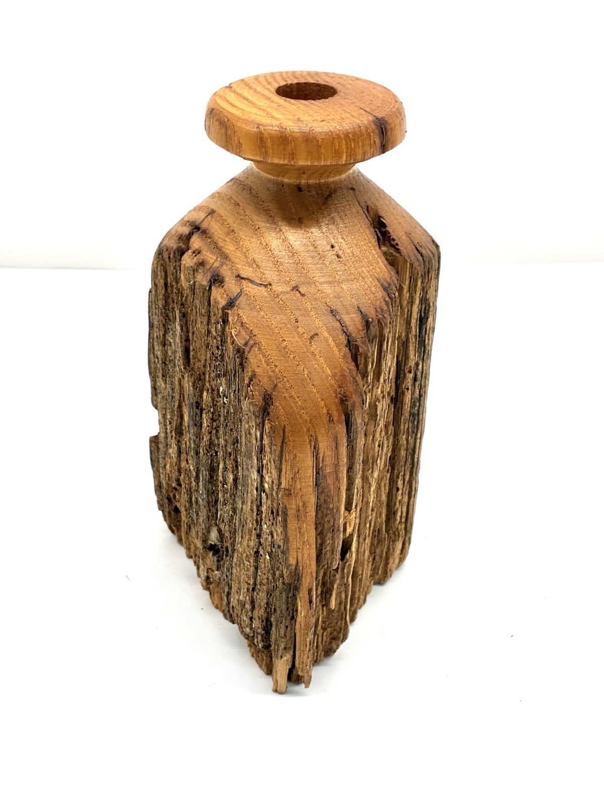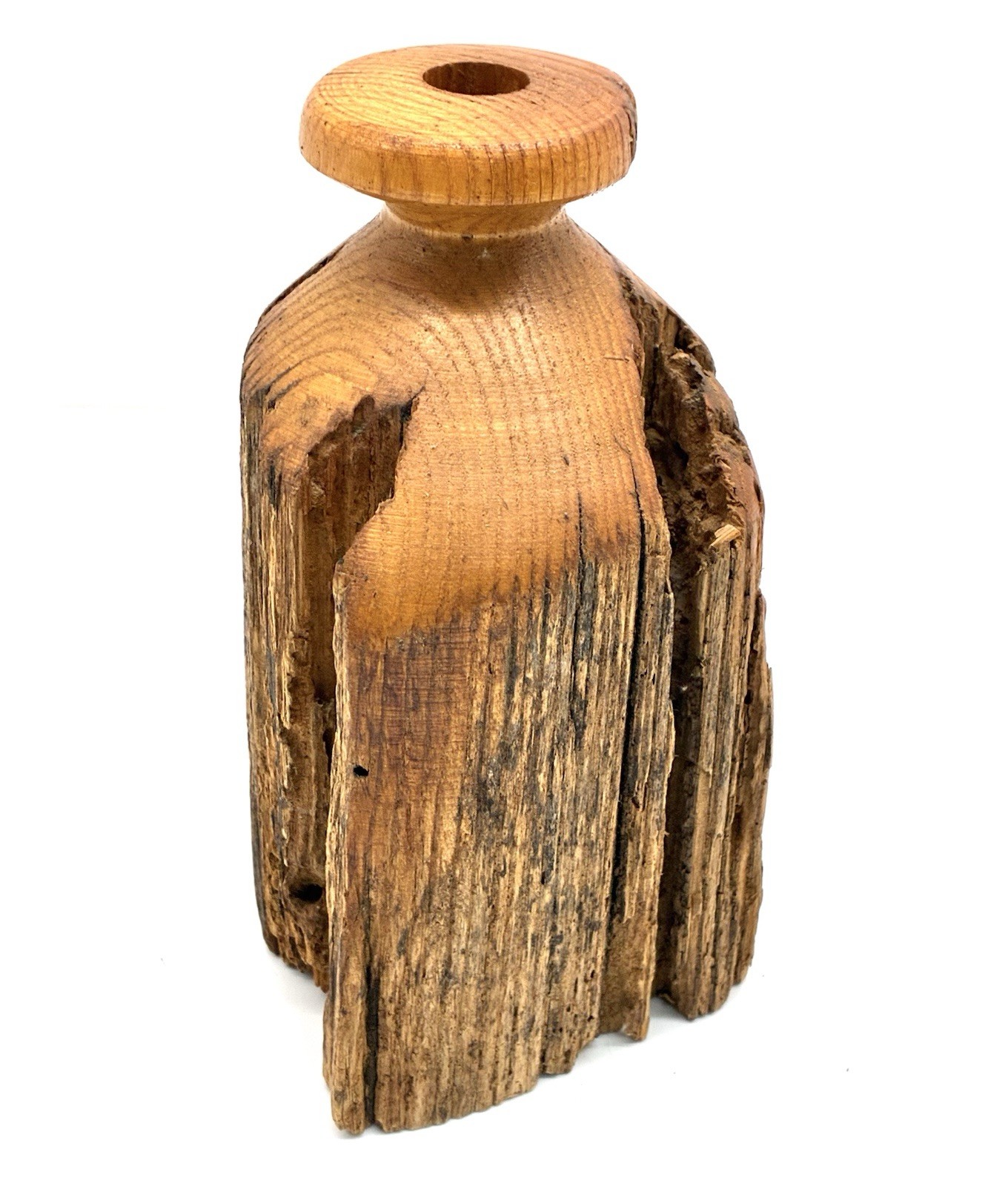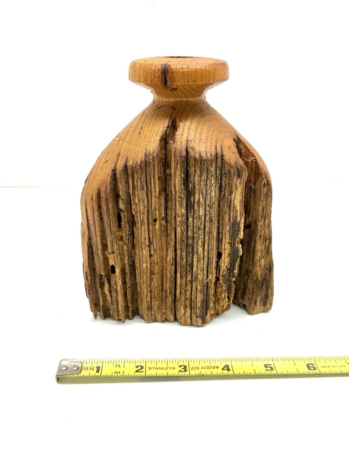 Vtg Studio Artisanal Turned Natural Wood Live Edge Brutalist Vase Candleholder