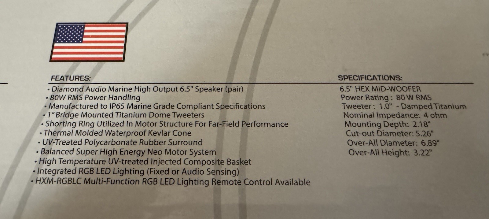 Diamond Audio HXM65 6.5 Marine Coaxial Speakers RGB LED 80W RMS Pair New