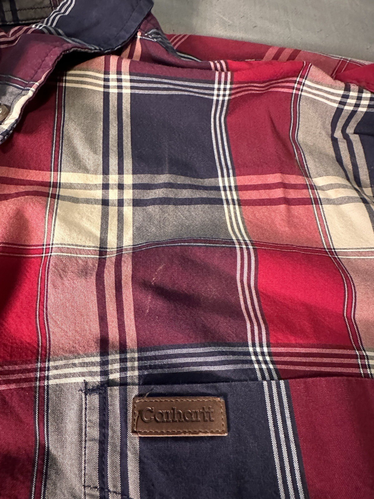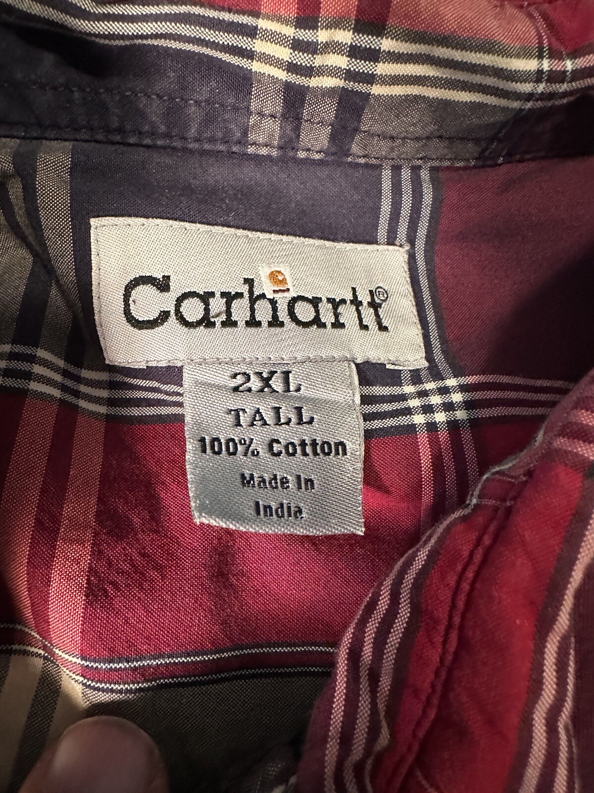 Carhartt Button Down Shirt Men's Size 2XLT Red Plaid Long Sleeve 100 Cotton