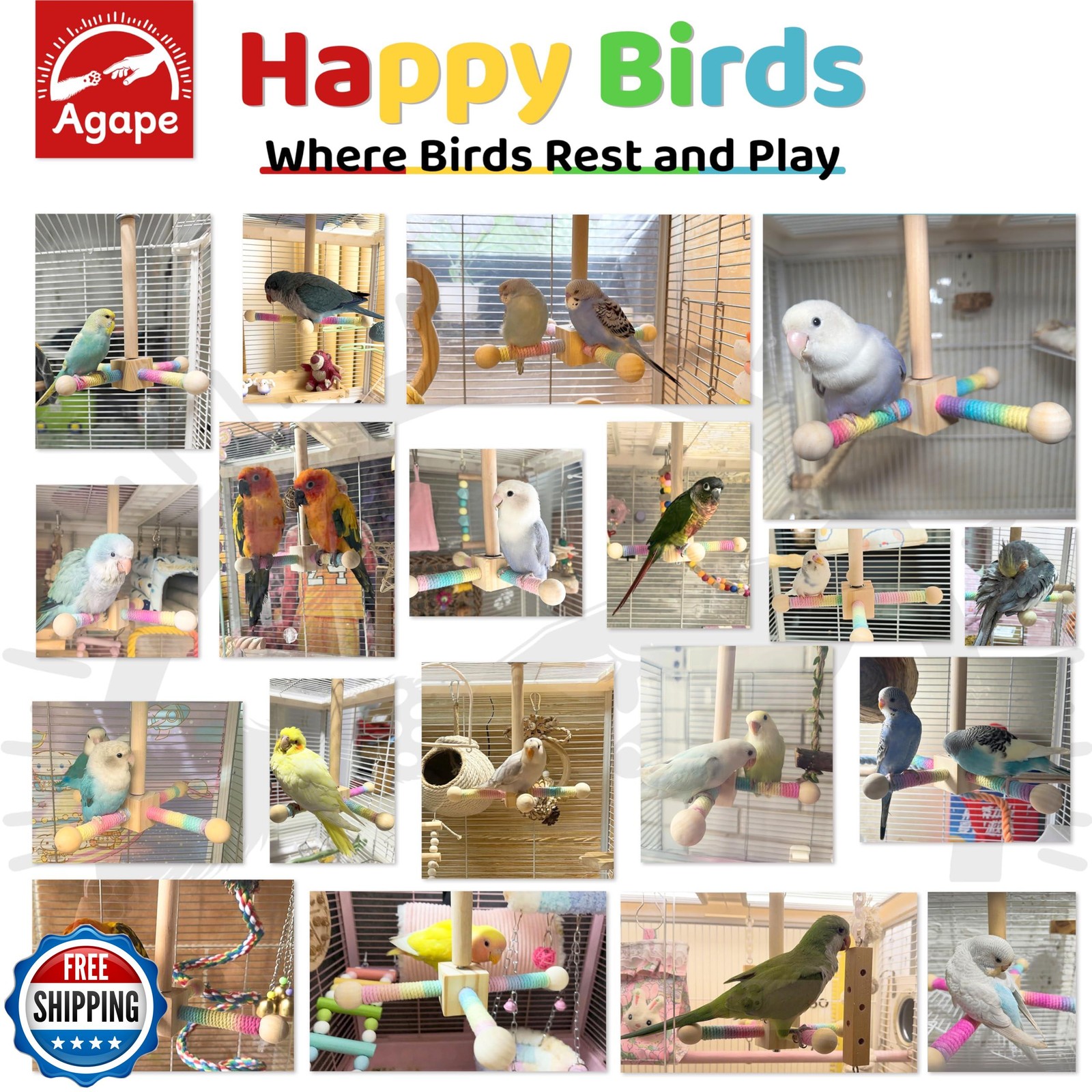 Agape Bird Toy, Parrot 360 Interactive Rotating Perch, Bird Cage