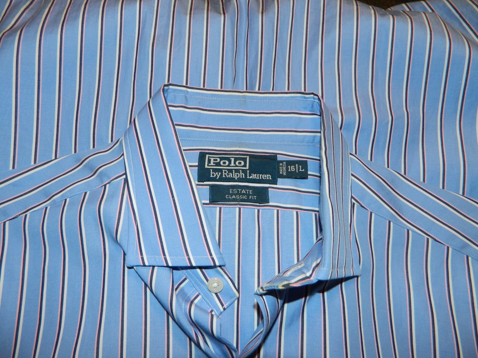 как выглядит POLO RALPH LAUREN MENS ESTATE CLASSIC FIT BUTTON FRONT SIZE 16/L COTTON BLUE фото