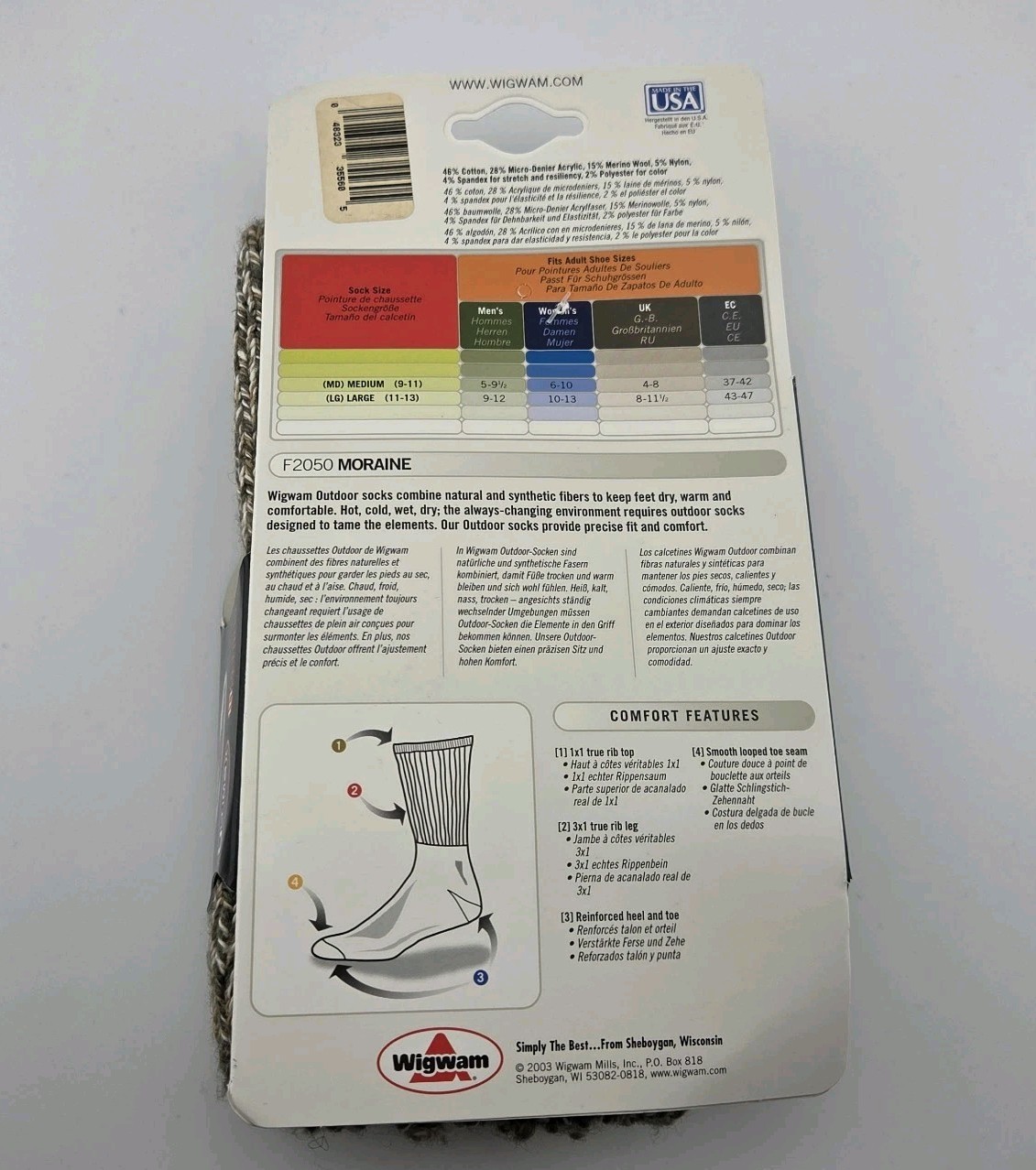 Vintage WigWam Outdoor Moraine Socks Cotton Wool Blend USA Made Size M
