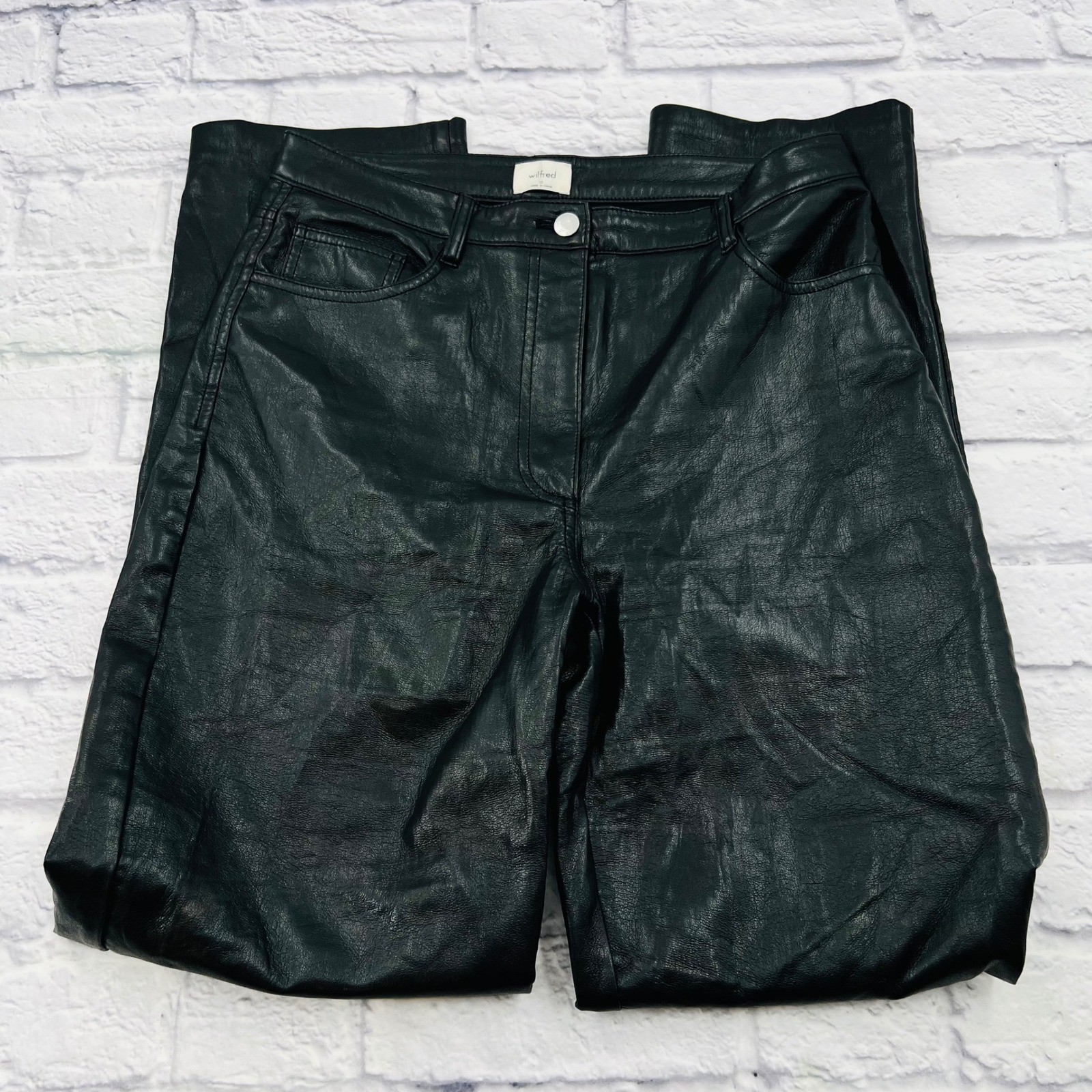 как выглядит Wilfred Aritzia The Melina faux leather pants black Size 10 Straight Leg Vegan фото