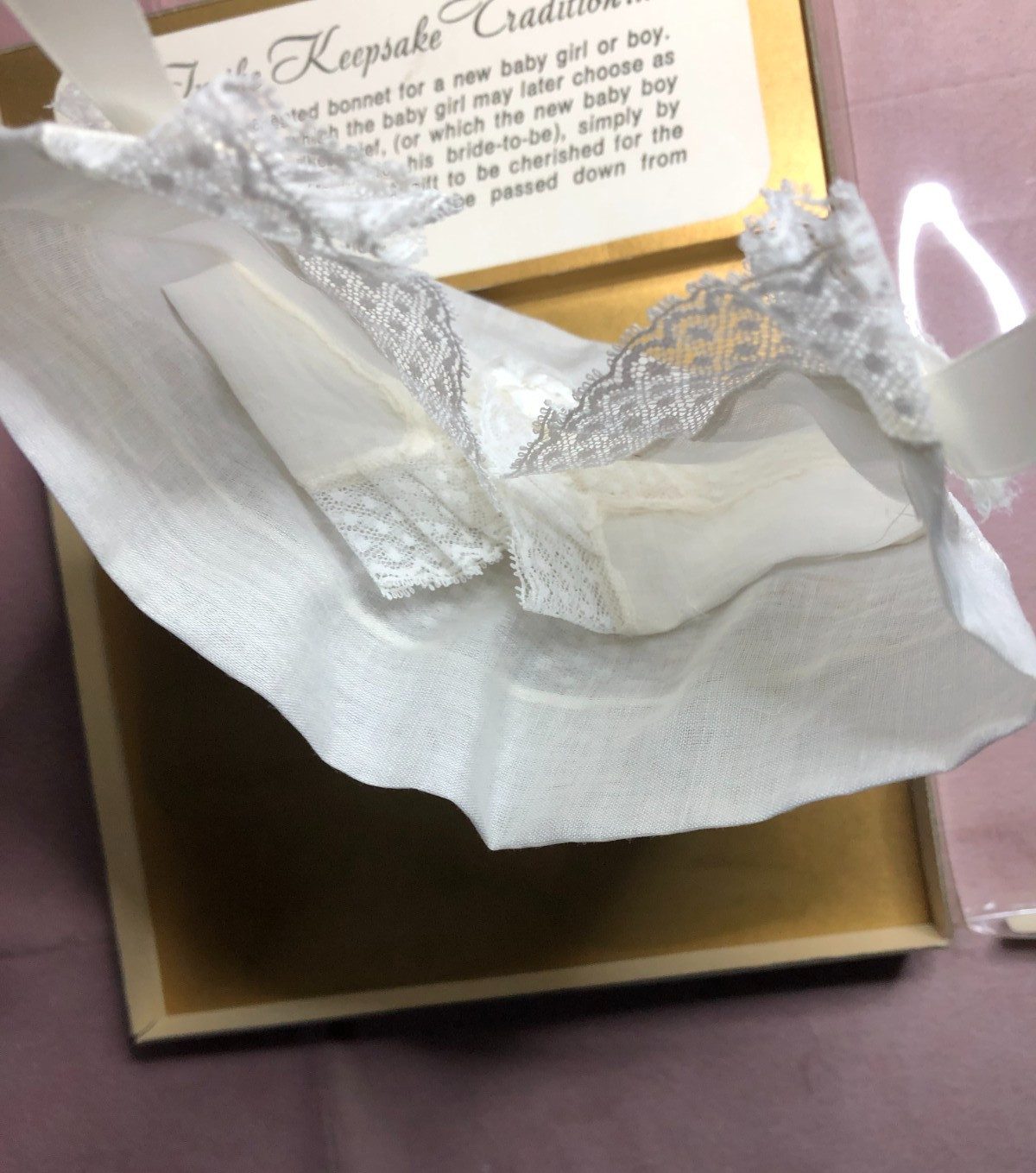 Vintage Keepsake Swiss Baby Bonnet with Original Box - Ships Free