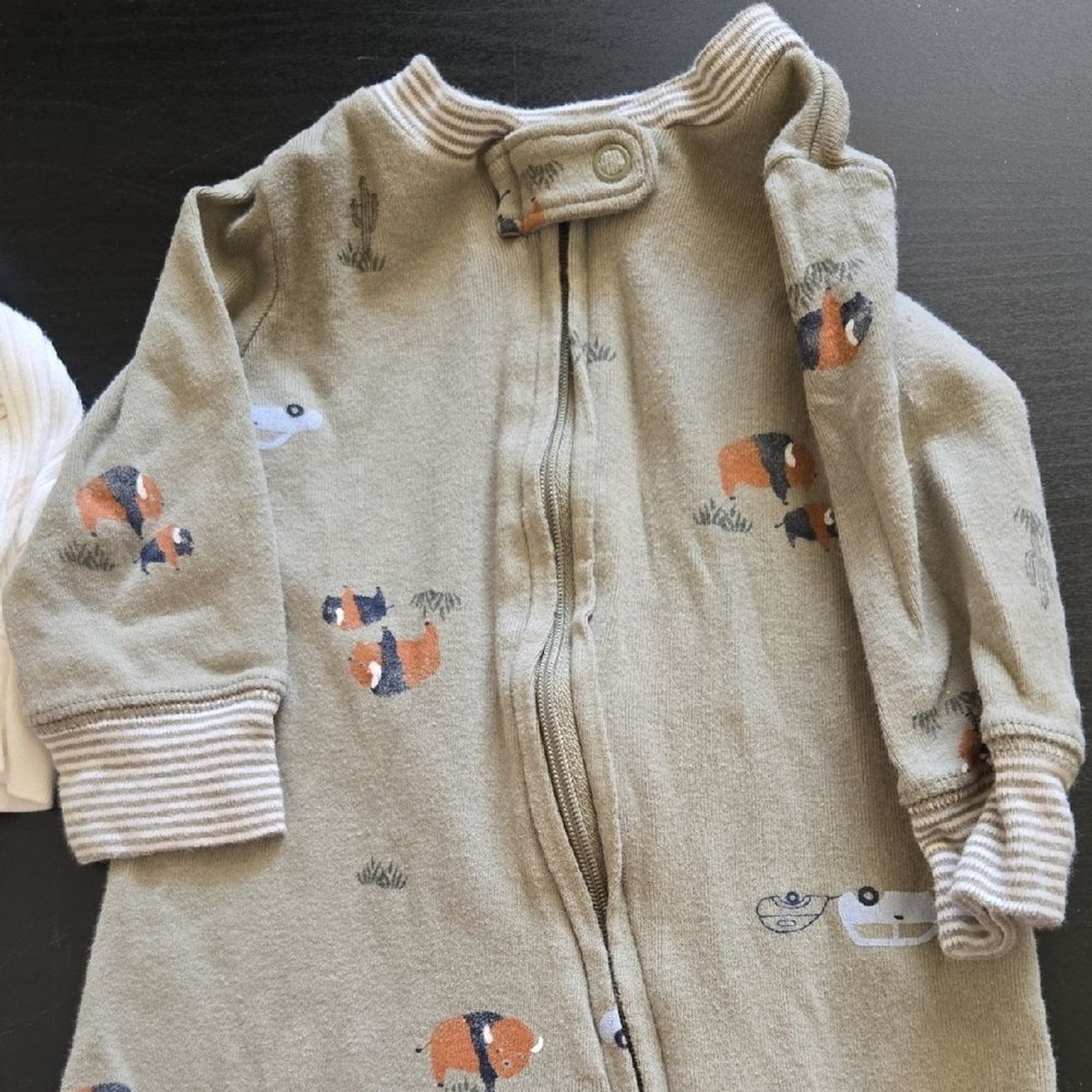 Set Of 2 Carter's Kids Footies - Cream and Grayish Green 3 Months