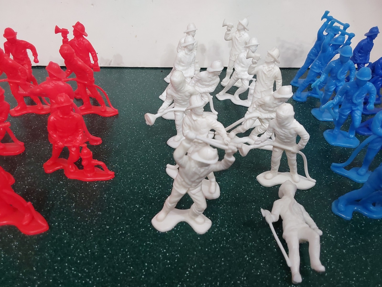44 Vintage Plastic Toy Firefighters. Red White And Blue. 3in.