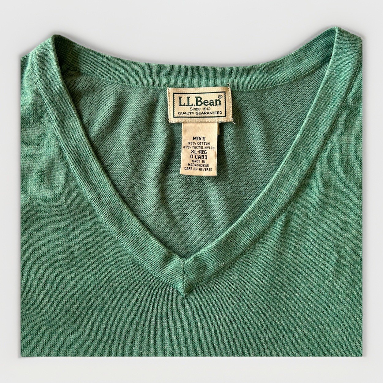LL Bean Cotton sweater Mens XL V-Neck green Lightweight