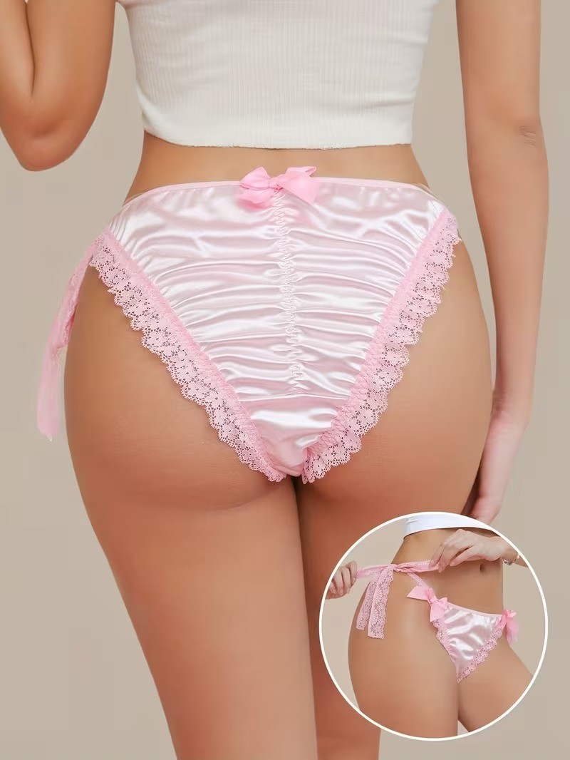 Sissy Bubblegum Pink Silky Satin Wet Look String Bikini Panties One Size BG 48