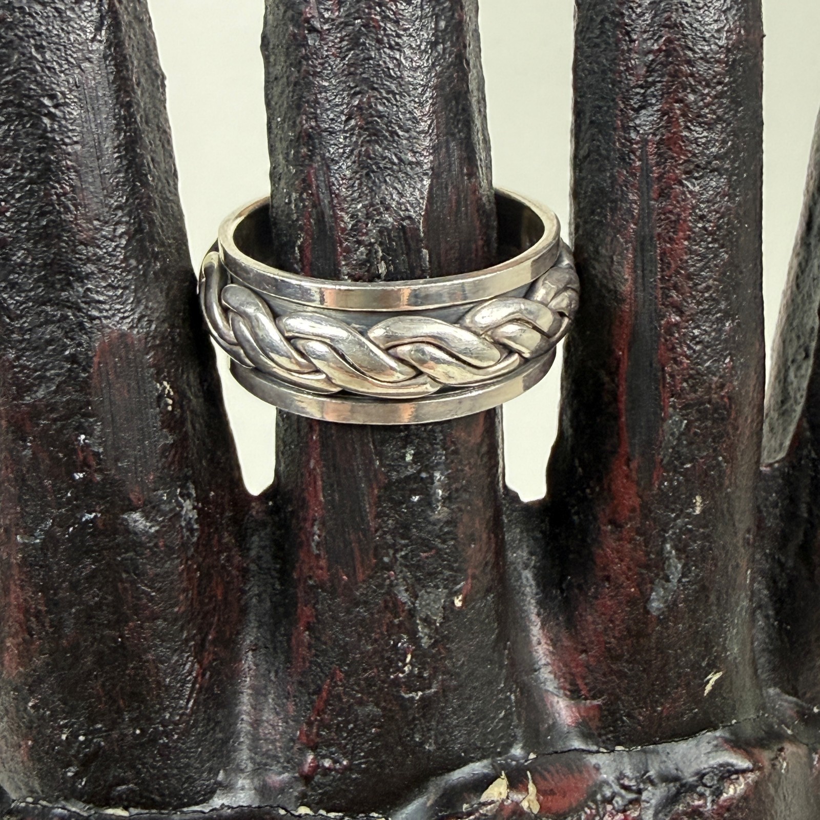 Double Braided Spinner Band Sterling Silver Ring Fidget Size 8.25
